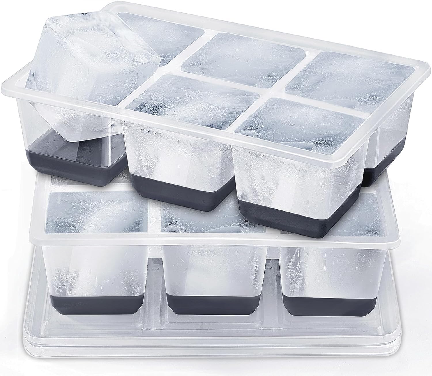 - 【Extra-Large Ice Cubes】Each ice cube tray makes 6 extra-large ice cubes (2.4x2.4x1.9in/6x6x4.8cm), perfect for whiskey, cocktails, or iced coffee. The large ice cubes melt more slowly, keeping your drinks chilled without dilution.