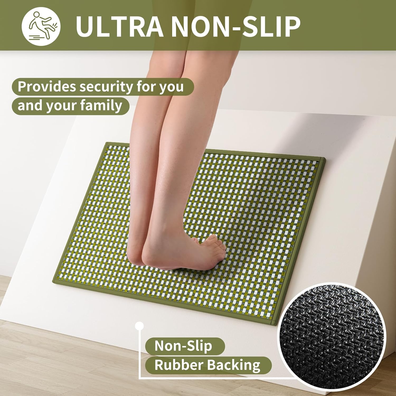 - Ultra Oil and Water Absorption: The woven surface of the kitchen sink mat quickly absorbs spilled oil and water, protecting the floor from grease, moisture, sauce or food crumbs. The kitchen rugs non slip washable keeps shoe soles and kitchen floors clean and dry, adding an extra layer of safety and security to your kitchen.