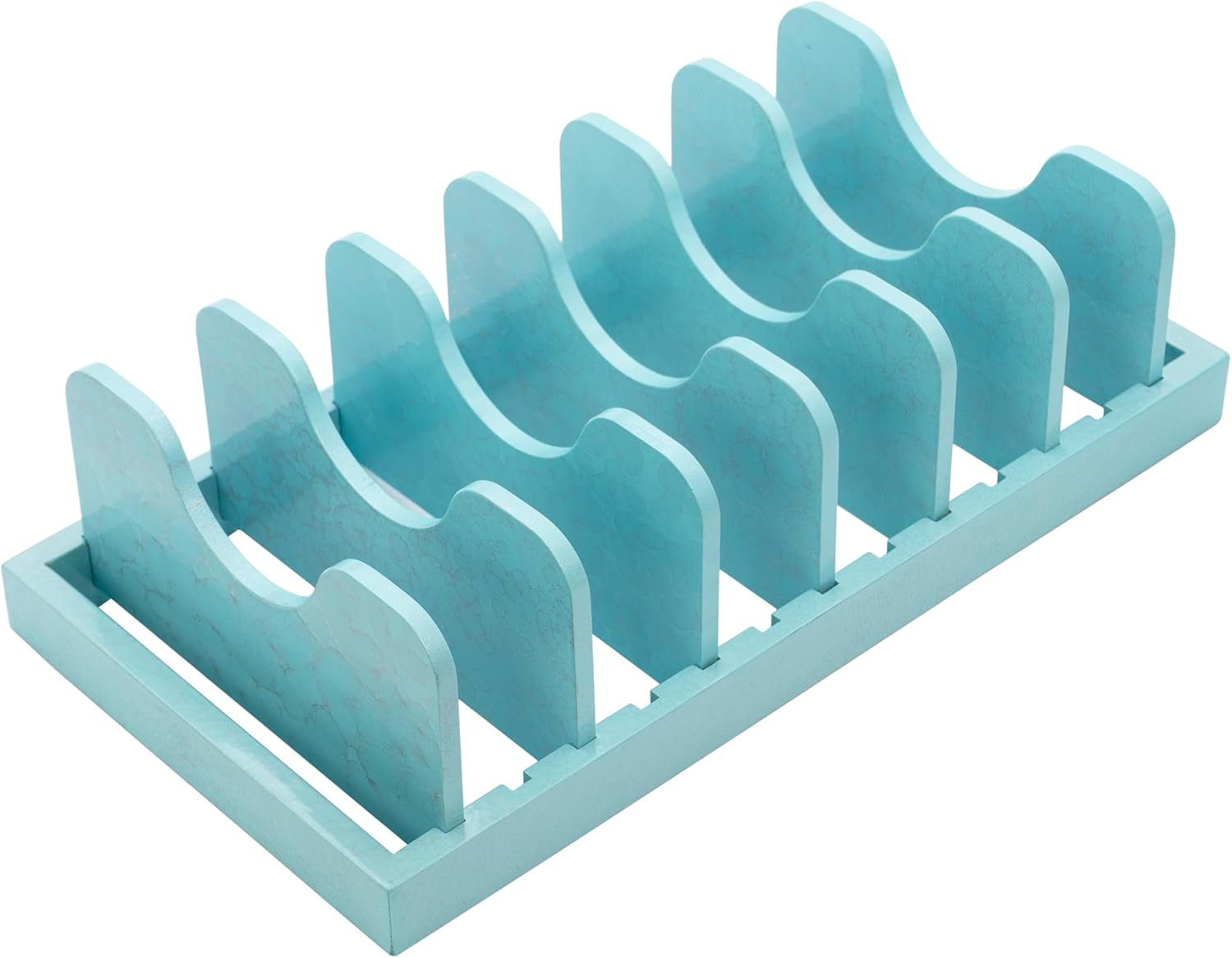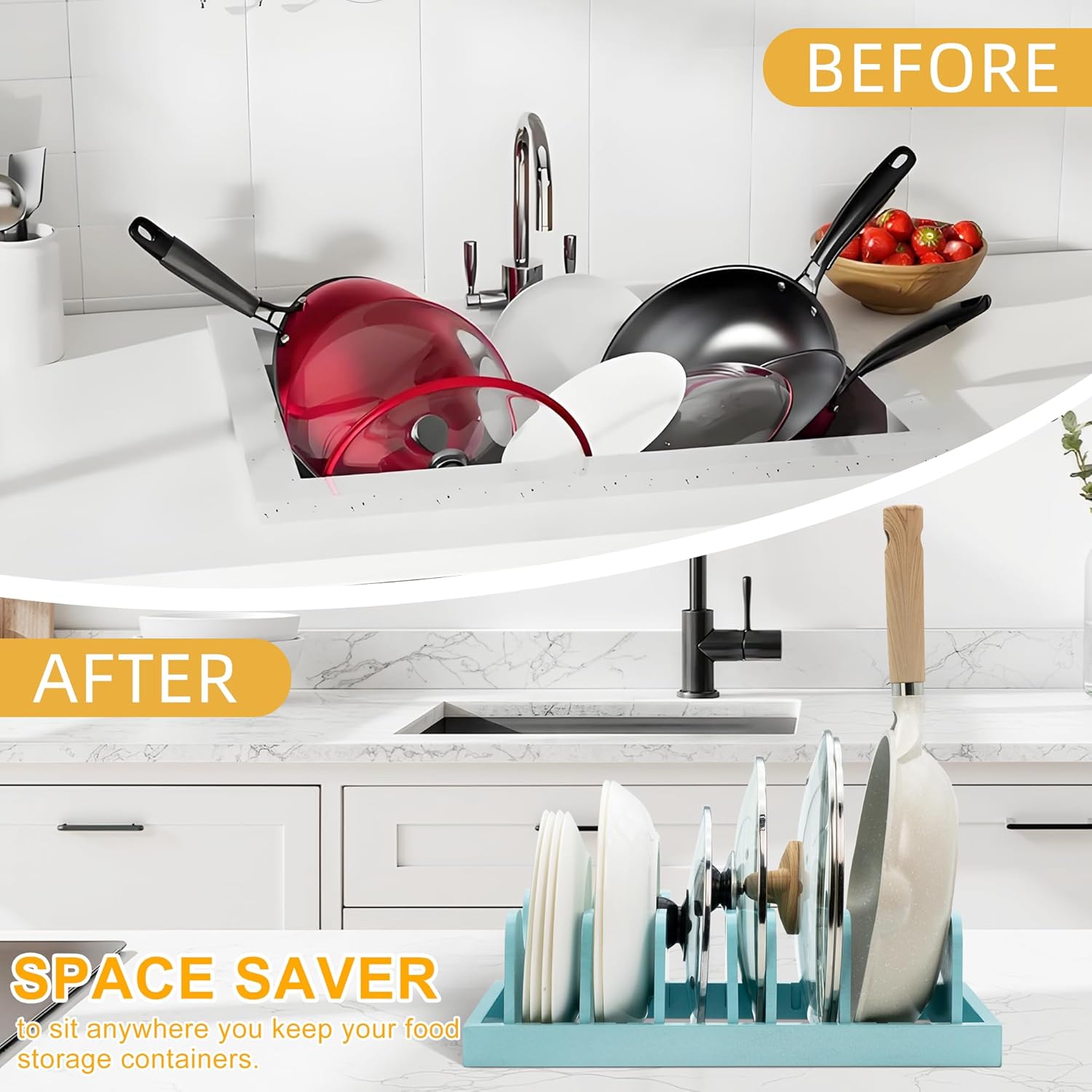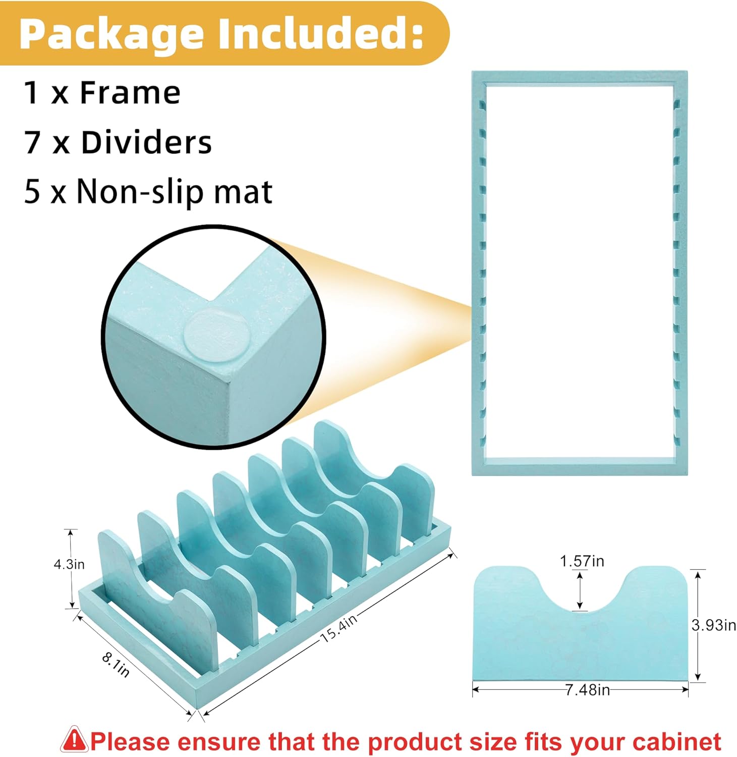 MinBoo Bamboo Pot Lid Organizer Pot Lid Holder, Pot and Pan Organizer Drawer Organizer for Pot Lids, Pans, Dinner Plates, Reusable Containers in Cabinet Storage,Blue