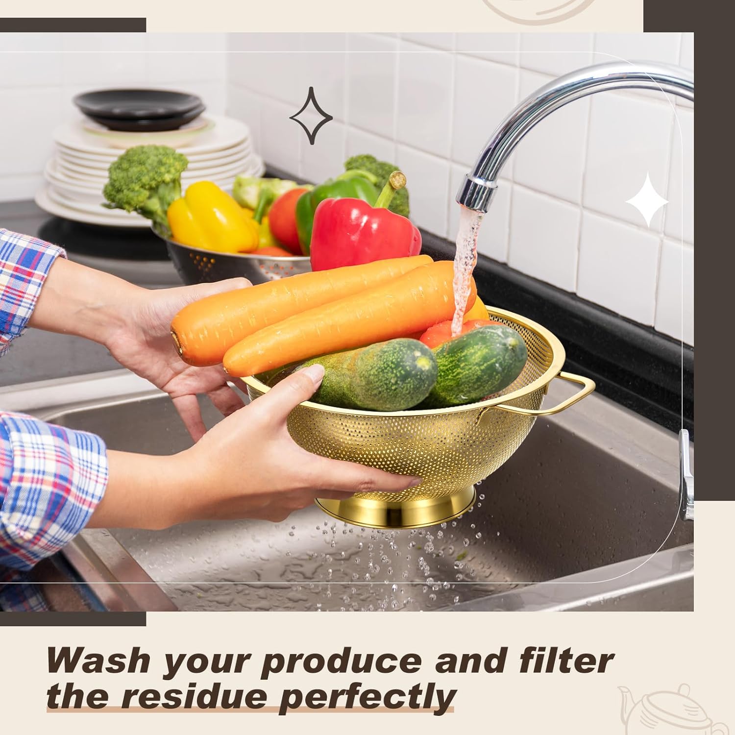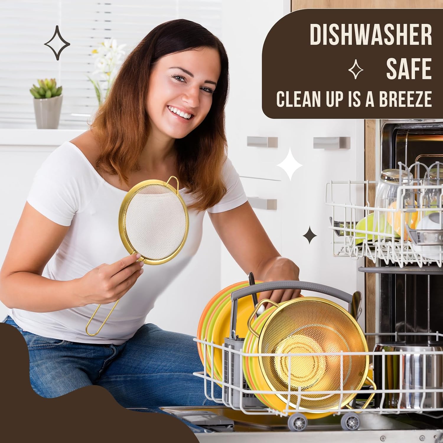 - Gold Kitchen Accessories: this package comes with 3 pieces of gold fine mesh strainers and 1 piece of 3 quart gold colander, this combination is nice to meet your daily usage and replacement needs, you can also share them with others