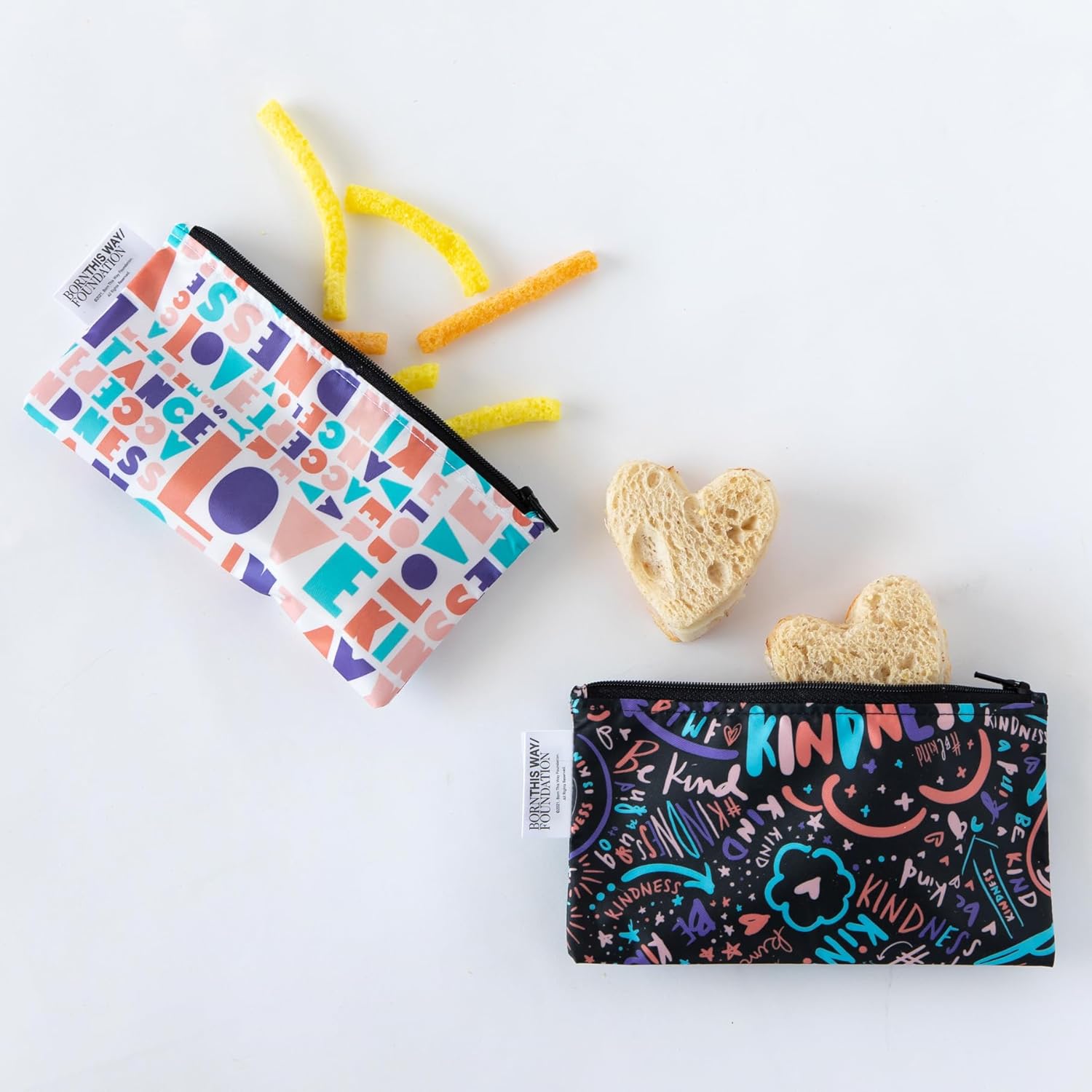 Bumkins - Cloth Snack & Sandwich Bags - For Storage, Travel, Food Prep, Lunch - Reusable, Water Resistant, Washable, Dishwasher Safe - Snack Bags for Kids - Zipper Closure - BTWF Kindness - 4 Pack