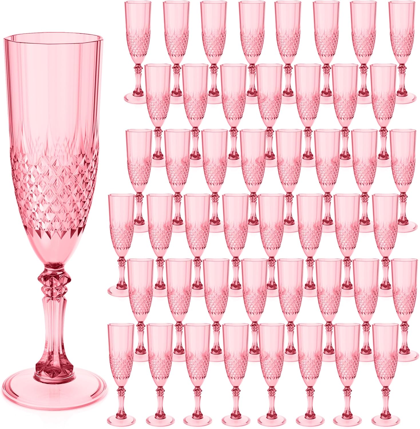 - Charming Set: Champagne flutes set include 48 retro-style light red champagne plastic wine glasses, providing ample quantity to meet your daily use and replacement needs. A suitable champagne cup is the icing on the cake. Plastic wine glasses not only carry the wine, but also carries the laughter and blessings