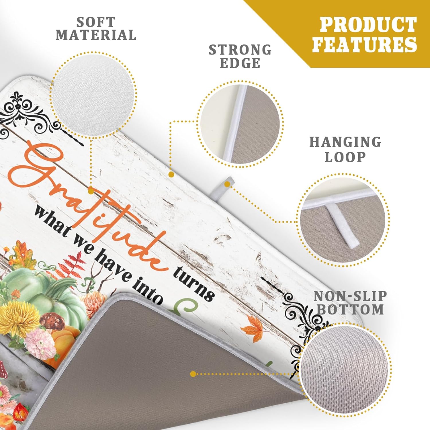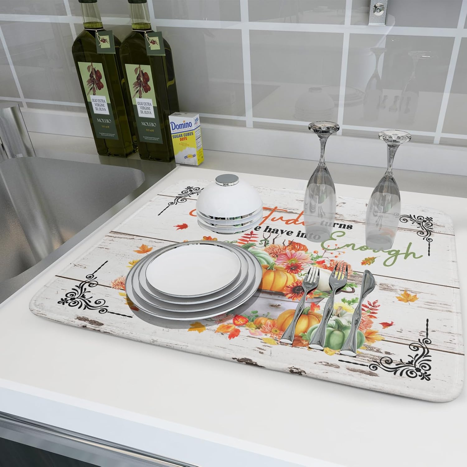 White Autumn Dish Drying Mat Absorbent Fall Drying Matt Kitchen Counter 18 X 24 in Home Season Decor