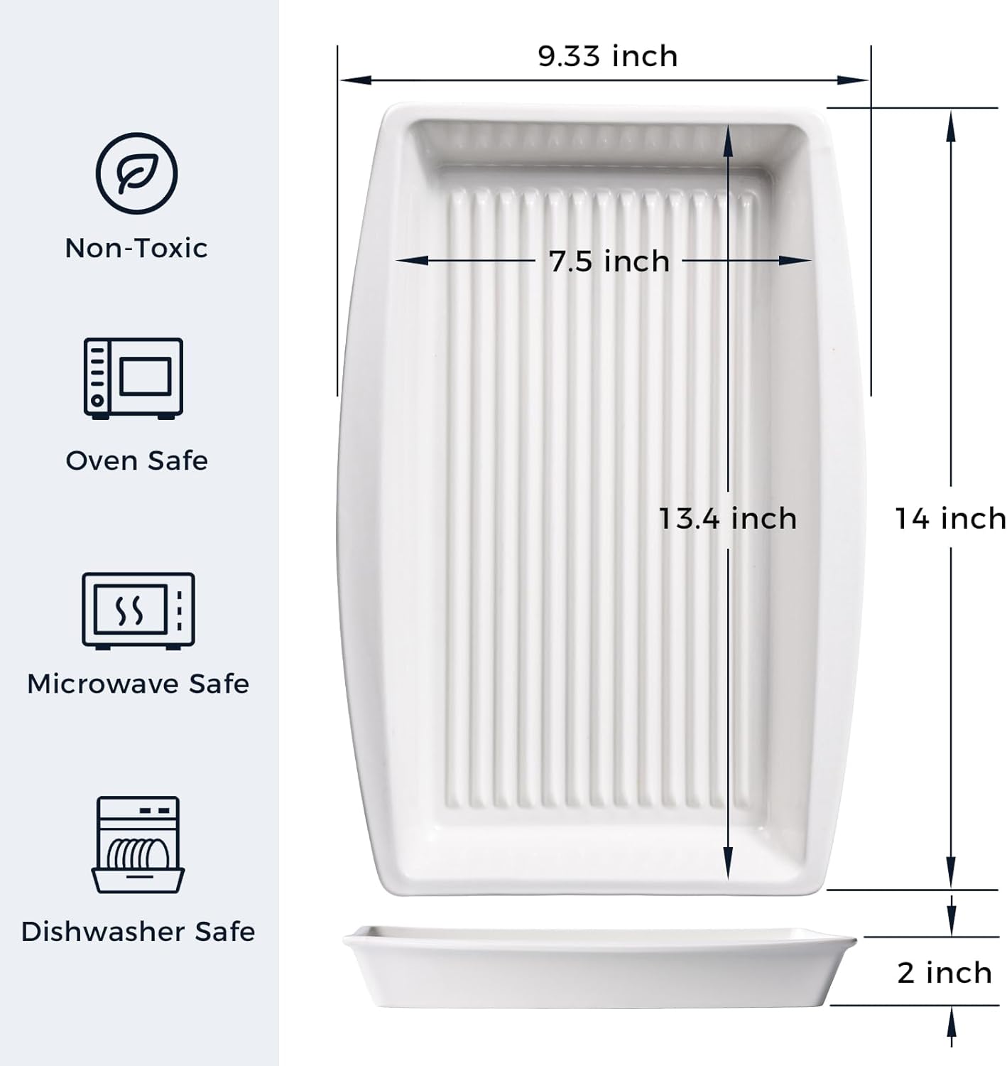 - 【Unique Groove Design】 Our ceramic baking dish features a unique groove design that helps reduce greasiness, allowing you to cook delicious, healthier, and crispier meals that release easily from the dish.