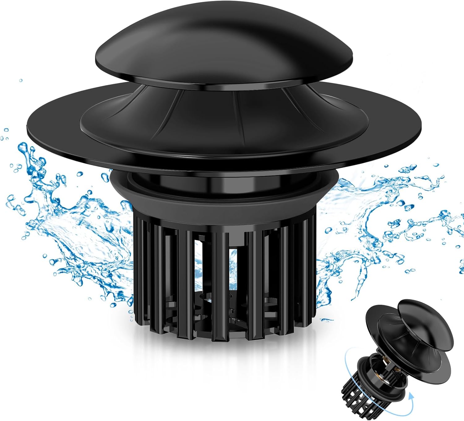 - 【Easy to use】 Simply push down the button to stop the water, Push again to drain the water. Removable filter basket captures small items like hair, jewelry, and debris. Effectively prevent clogged drain! In addition, the bathroom drain stopper can be disassembled into 4 parts to be cleaned easily.