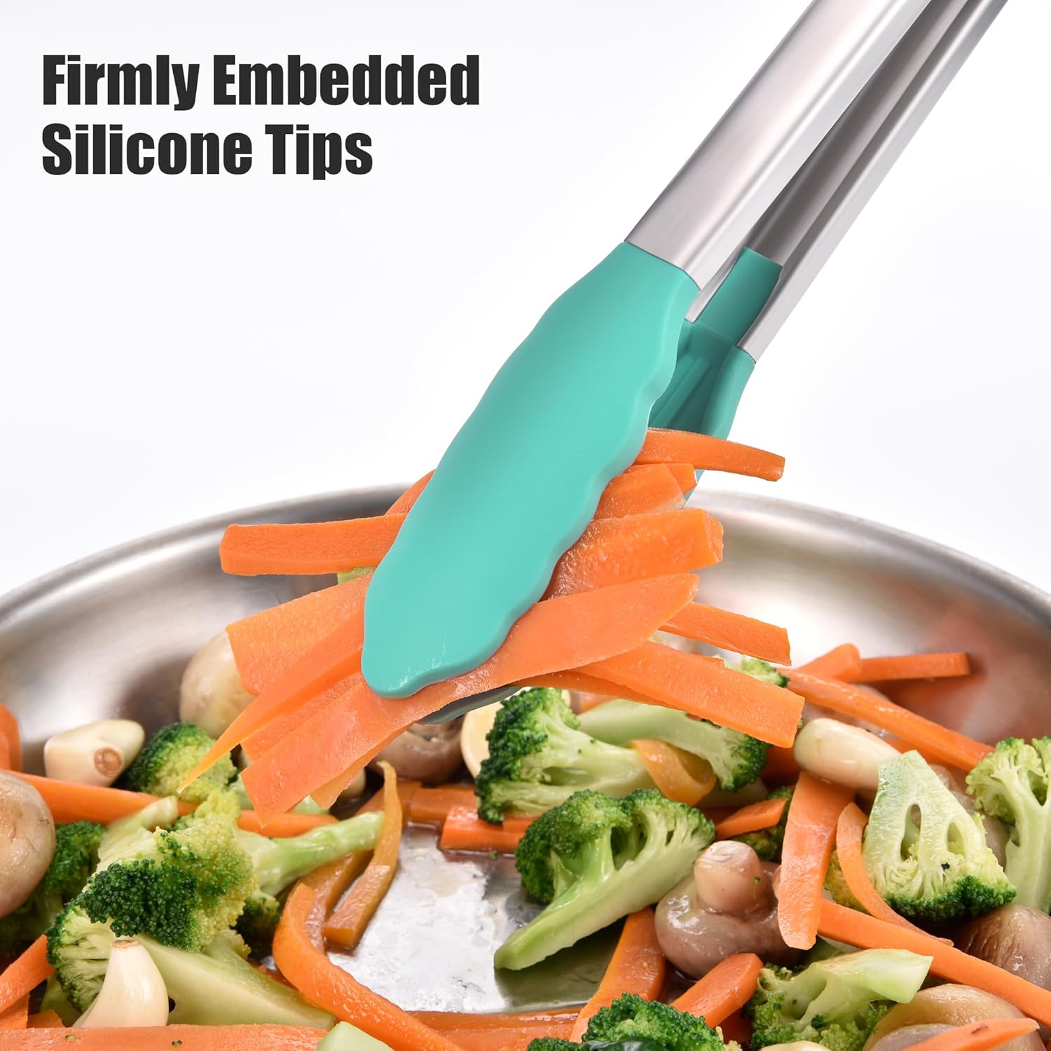 Doosu Kitchen Tongs for Cooking - 600°F Heat Resistant Food Tong with Non-Scratch Silicone Tips, Heavy Duty Stainless Steel Locking Tong for BBQ, Grilling Steak, Serving Salad, Pasta (16in, Aqua Sky)