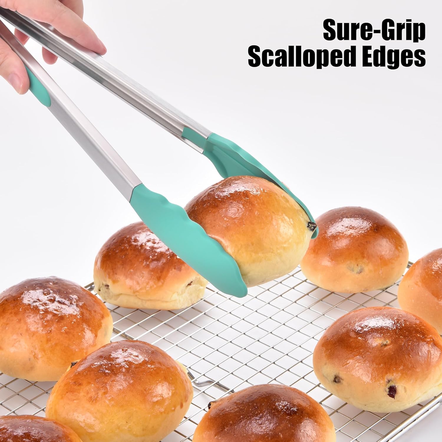 - Are tips heat-resistant and non-scratch? The tips of the tong are coated with high-quality, food grade silicone that is heat-resistant up to 600°F (315°C), making them safe for directly handling hot foods from the oven, stovetop, or grill. Unlike metal-tipped tongs, the soft silicone tip won’t scratch or damage non-stick pans or grill grates. The scalloped edges are specially designed to provide a secure, non-slip grip, easy to grasp delicate vegetables, smooth meat, or small pieces of food.
