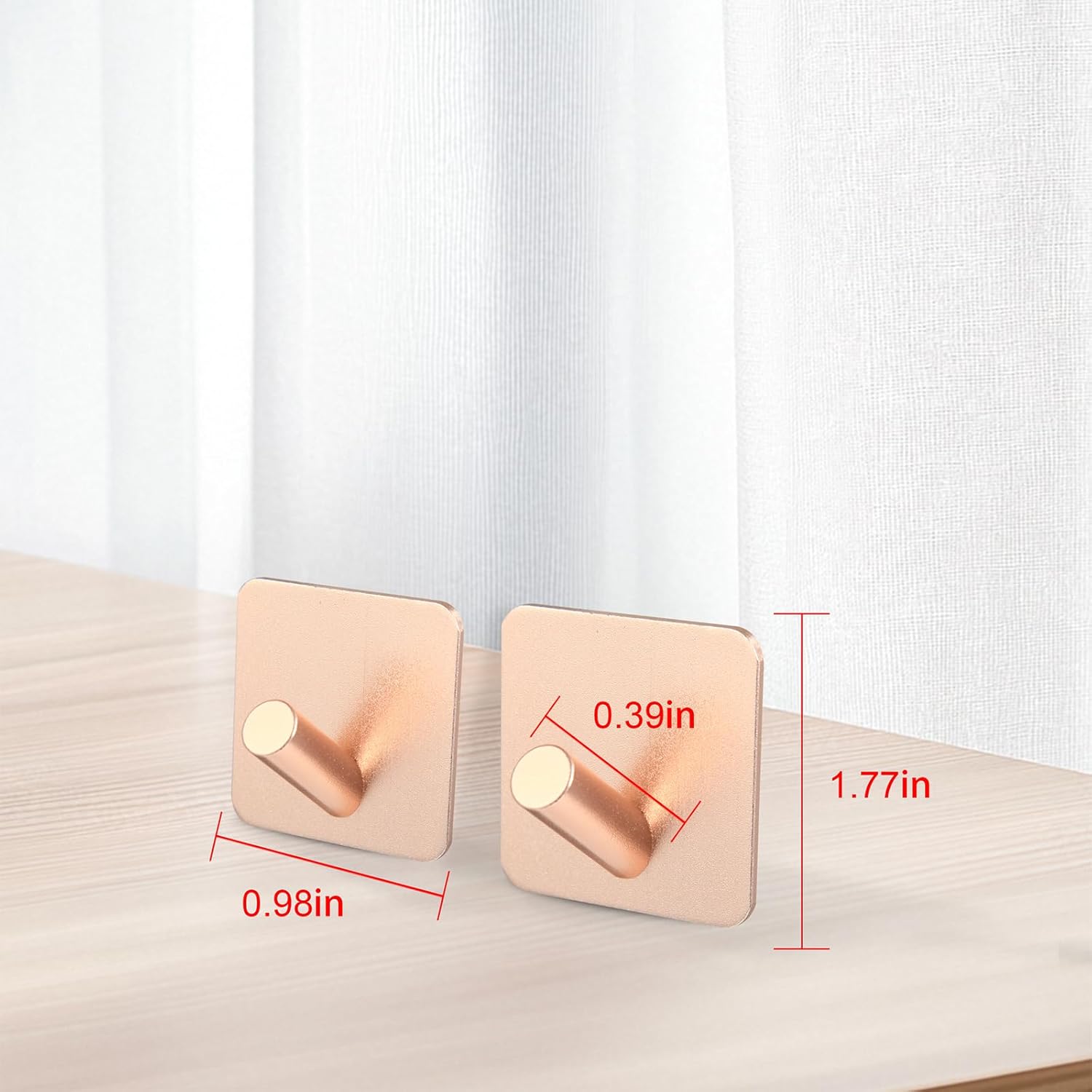 Aluminum Wall Hooks, No Drill Damage-Free Adhesive Hook, Product for Hanging Heavy Duty for Bathroom Kitchen Home (Slanting Square Rose Gold Hook, 4)