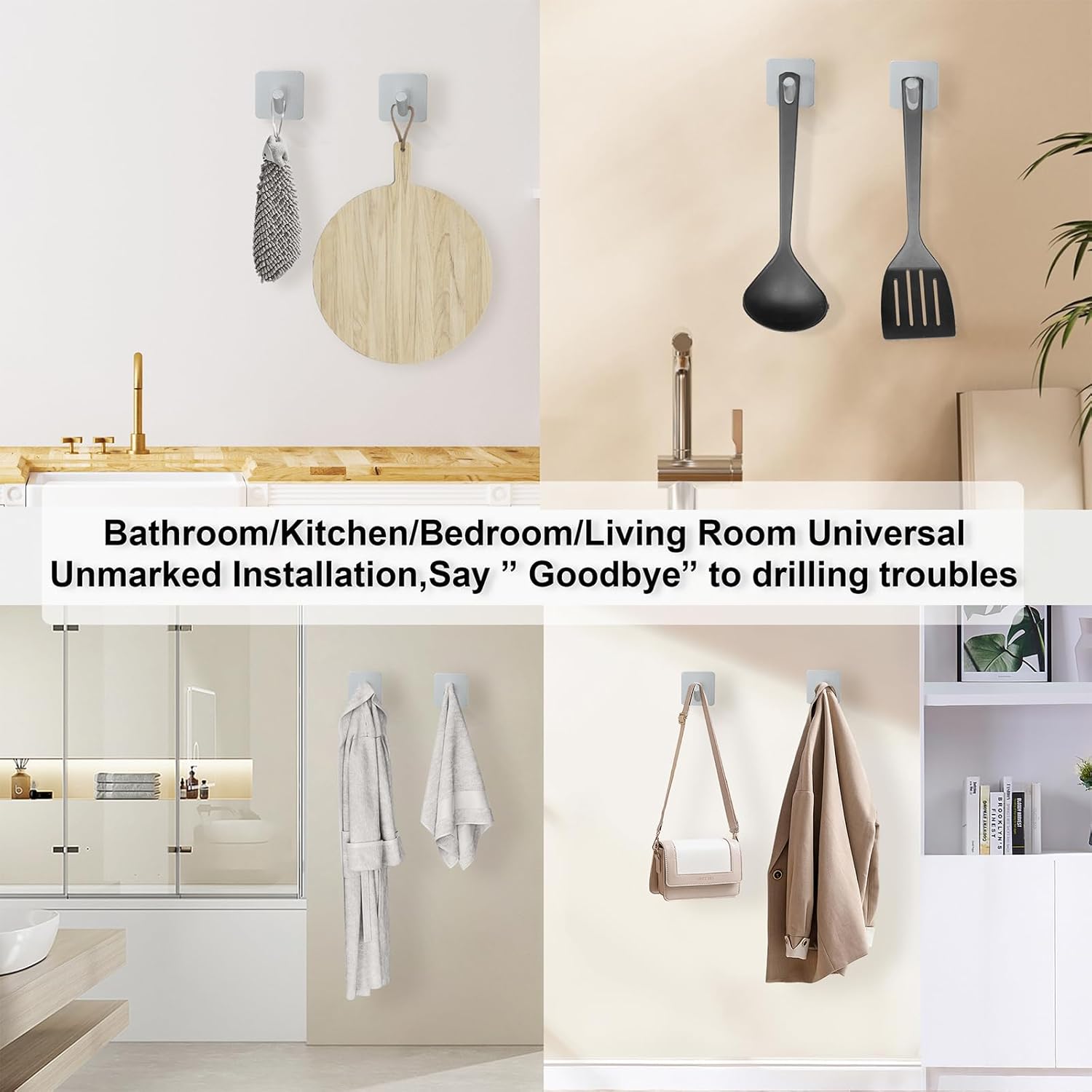 - 【No Tools Needed – Easy & Damage-Free Installation】 Install in seconds—just peel and stick! These over-the-door hooks and wall hooks require no nails, screws, or tools, making them ideal for renters, dorm rooms, and temporary setups. Removes cleanly without damaging walls, so you can reposition them hassle-free.