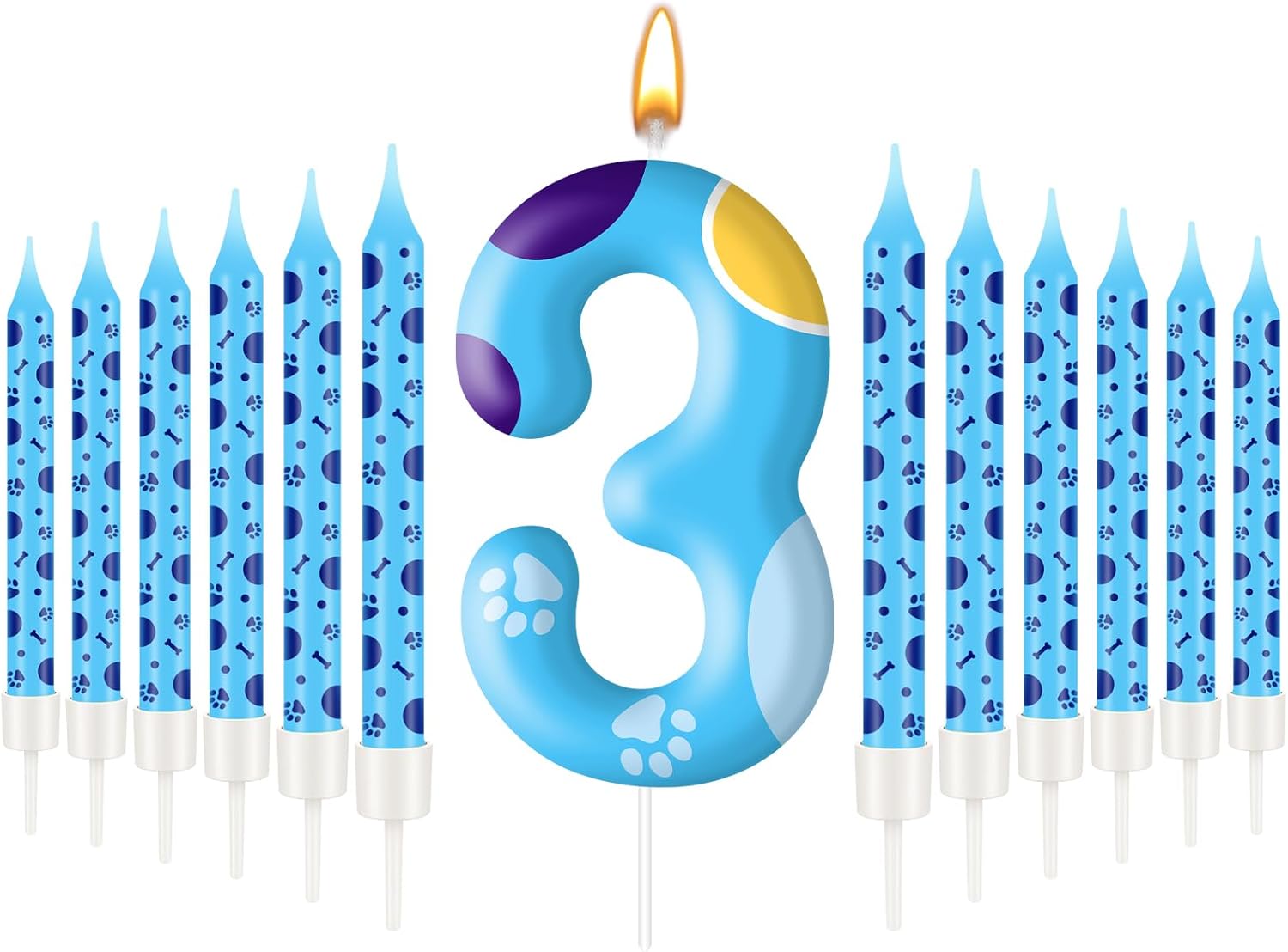 - Packaging: You will receive 12pcs and number 3 blue dog paw birthday candle comes individually wrapped for freshness and convenience! With a charming paw-print design and vibrant blue hues, these candles are perfect for creating a cohesive theme. Kids will adore the playful patterns, while parents love the hassle-free setup for dog-themed birthday parties!