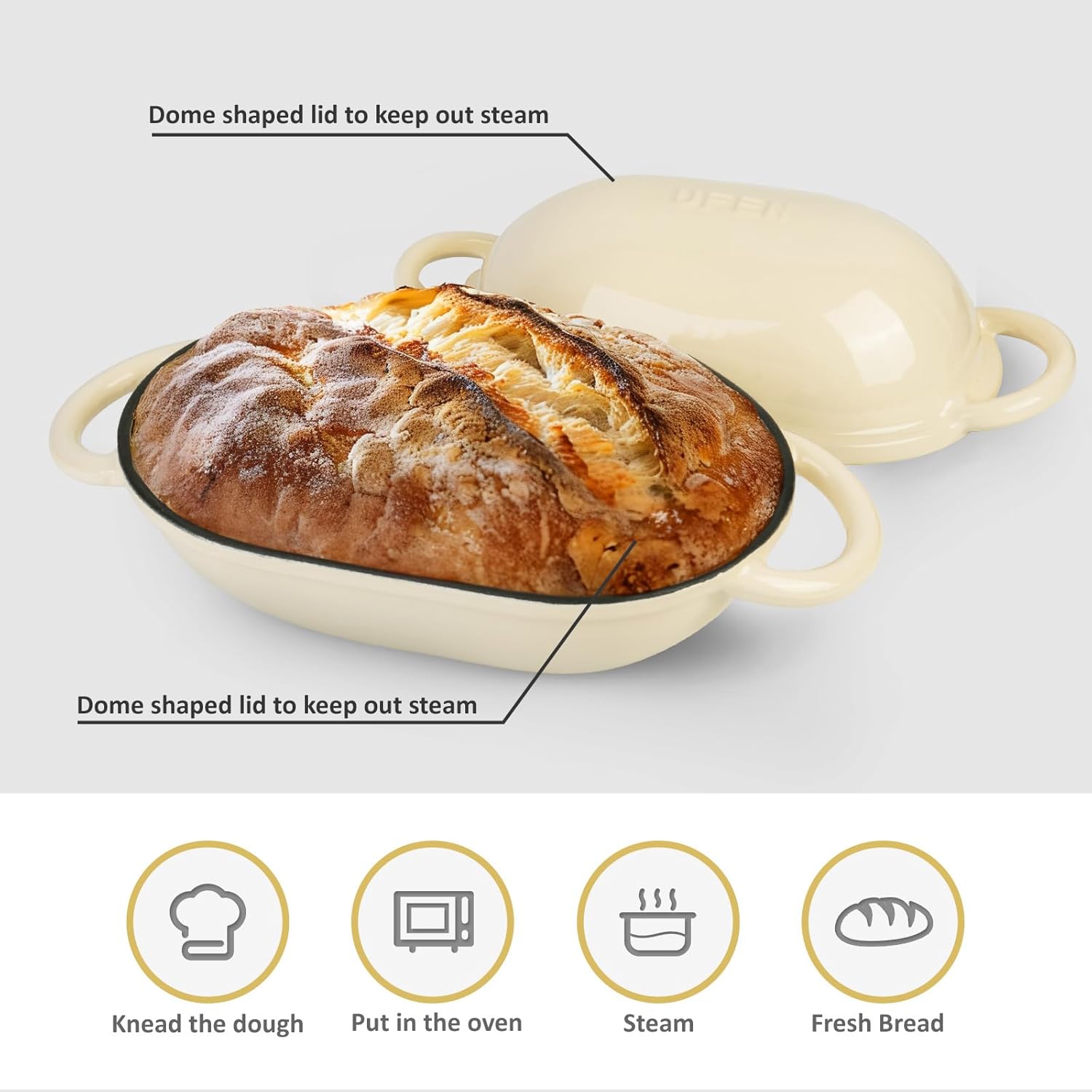 - Perfect Bread Every Time – Achieve a crispy crust and soft, airy interior just like artisan bakeries. The cast iron construction ensures even heat distribution for perfect sourdough, no-knead bread, and homemade loaves.