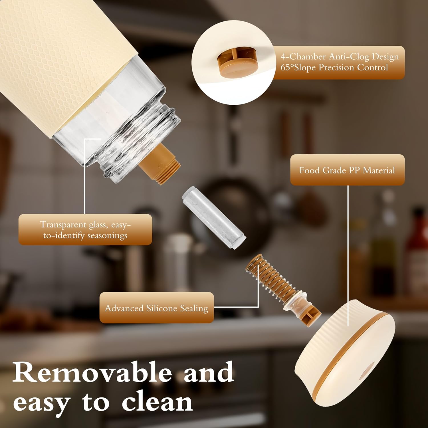 - 【Anti-Clump & Jam-Proof Seal】Food-grade silicone sealing ring blocks moisture completely, preventing salt clumping and jamming. No more frustrating salt clogs or wasted seasoning, are suitable for storing salt, sugar, pepper, chili powder, cinnamon powder and more;