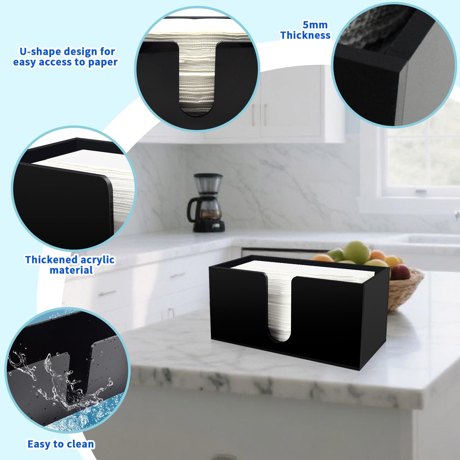 Paper Towel Holder for Countertop,Black Acrylic Napkin Dispenser-Multifold/C-Fold/Z-Fold Trifold Paper Towel Dispenser for Bathroom Kitchen Restaurant Toilet - Durable 5mm Thick (1)