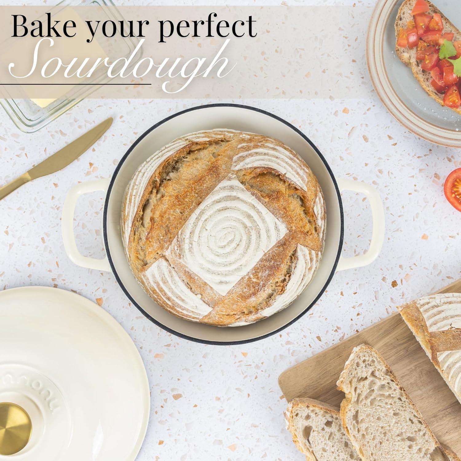 - PERFECT FOR BREAD BAKING: Our enamelled bread pot with lid is designed to create the ideal environment for baking, ensuring even heat distribution throughout. The included lid traps steam, giving your bread a moist crumb and delightful texture. Achieve a delectable golden crust every time!