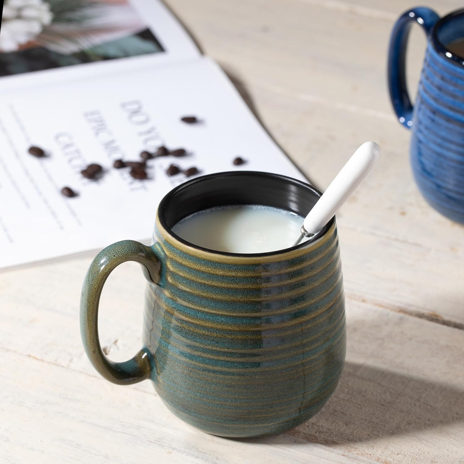 20 oz Large Ceramic Coffee Mugs set of 2, Coffee Mugs for Women and Men, Big Tea Cups, Large Handle Mugs for Office and Home, Microwave and Diahwasher Safe (Green with Stripes, 2PCS)