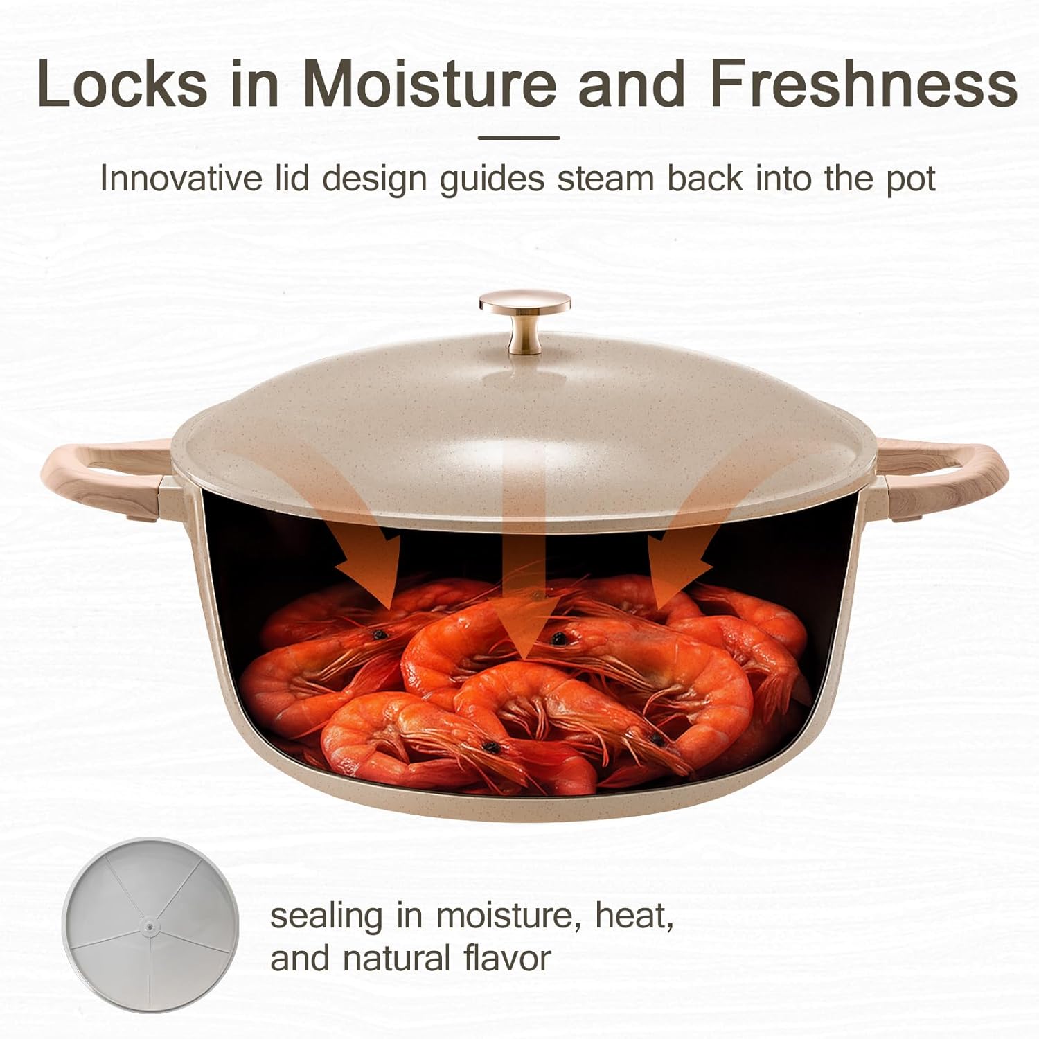 - 【Ti-Ceramic Coating Ultra Non-Stick & Non-Toxic】Engineered with a next-generation ceramic coating enhanced by titanium powder, this non toxic cookware set offers long-lasting nonstick performance and superior scratch resistance. 100% free from PFAS and other harmful chemicals—cook healthy with confidence.
