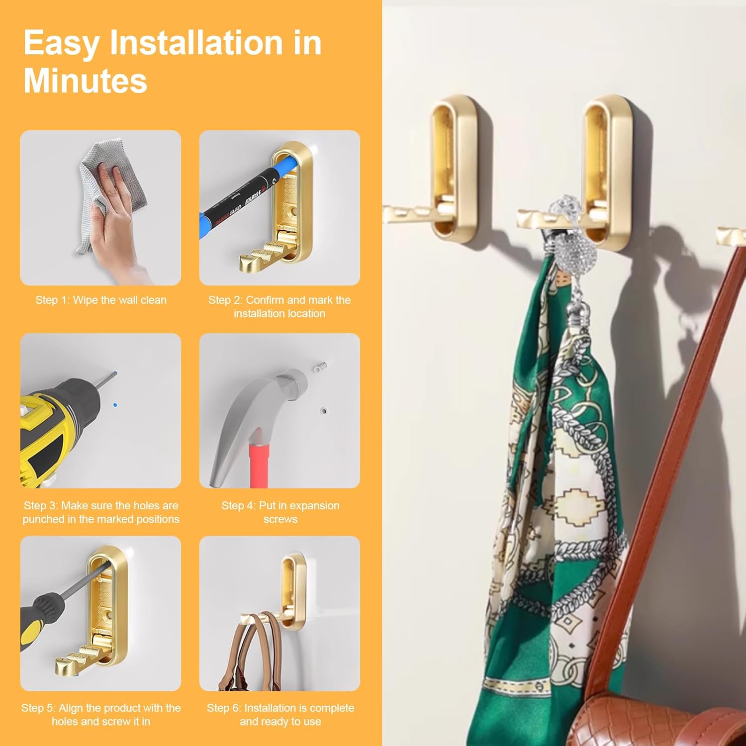 - Space-Saving Foldable Design – These wall hooks fold flat against the wall when not in use, perfect for small spaces like bathrooms, RVs, closets, and entryways. Maximize space without sacrificing functionality or style