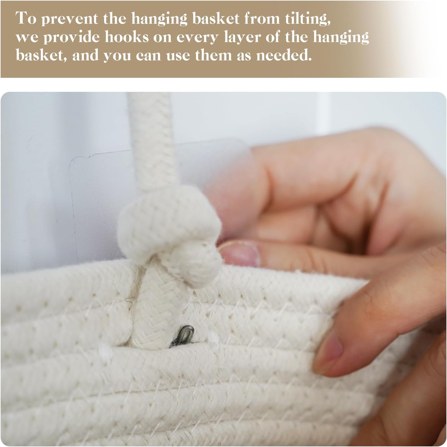 - Large Capacity: The whole woven cotton hanging wall basket measures a total height of 44.5 inches; One over-the-door hook and ten sticky hooks are prepared for you to hang up the basket. You can also use them as needed if the hanging basket appears to be tilted.