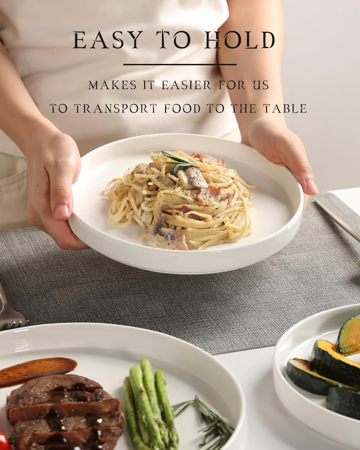 - Exactly What You Need: This ceramic 12 piece dinnerware set includes 6"soup bowls x 4, 8" salad plates x 4, 10" dinner plates x 4. The sizes of the plates are normal for salad and dinner, the bowls are quite big for cereal and soup, it’s both practical for daily use and a chic choice when hosting guests
