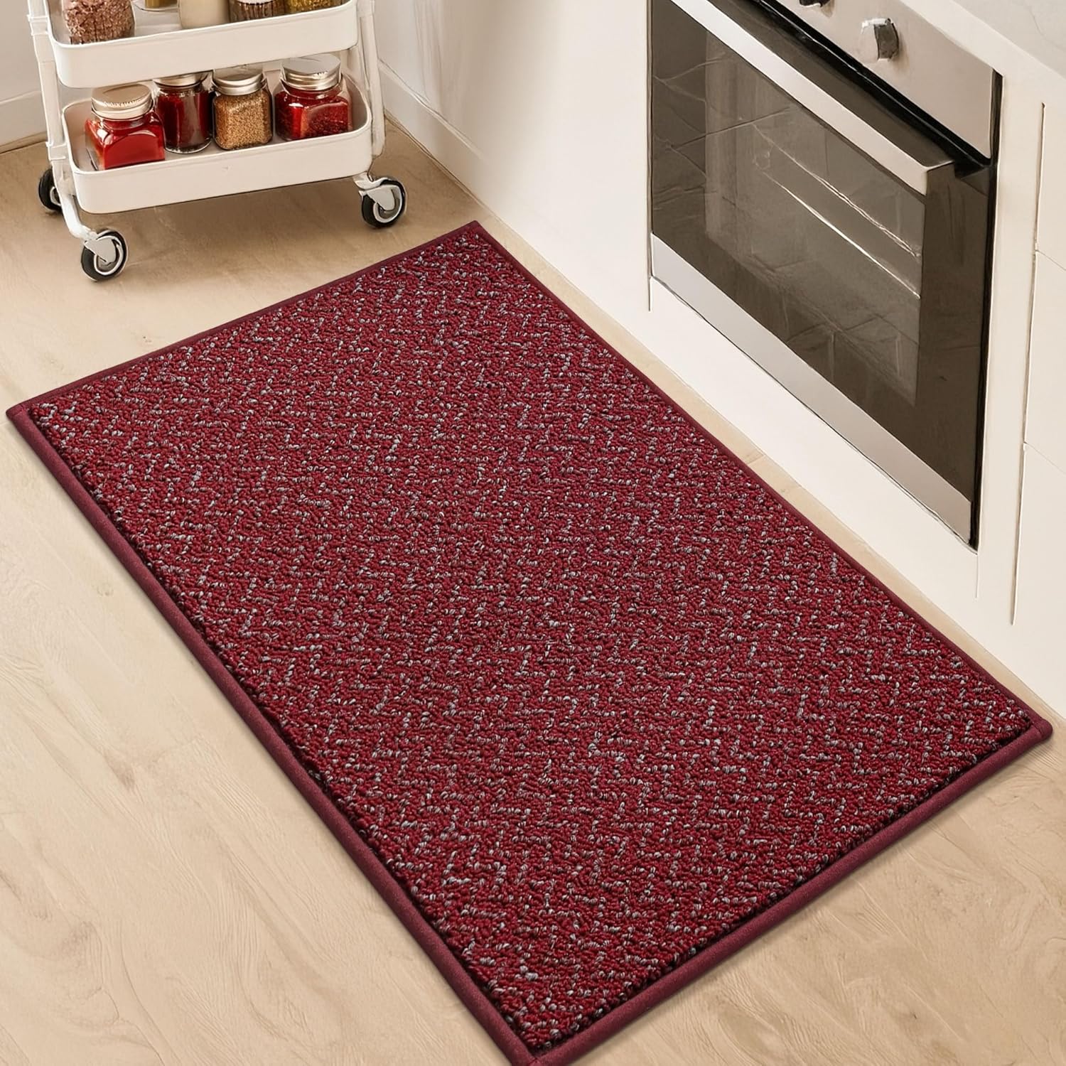 - Non Slip Backing:Our kitchen mats for floor are designed with a premium TPR non skid backing.Our non slip kitchen rugs prevent shifting or slipping during cooking or cleaning.The kitchen runner ensure stability and safety for kids, pets, and elders.NOTE: Please make sure the floor is clean and dry before placing