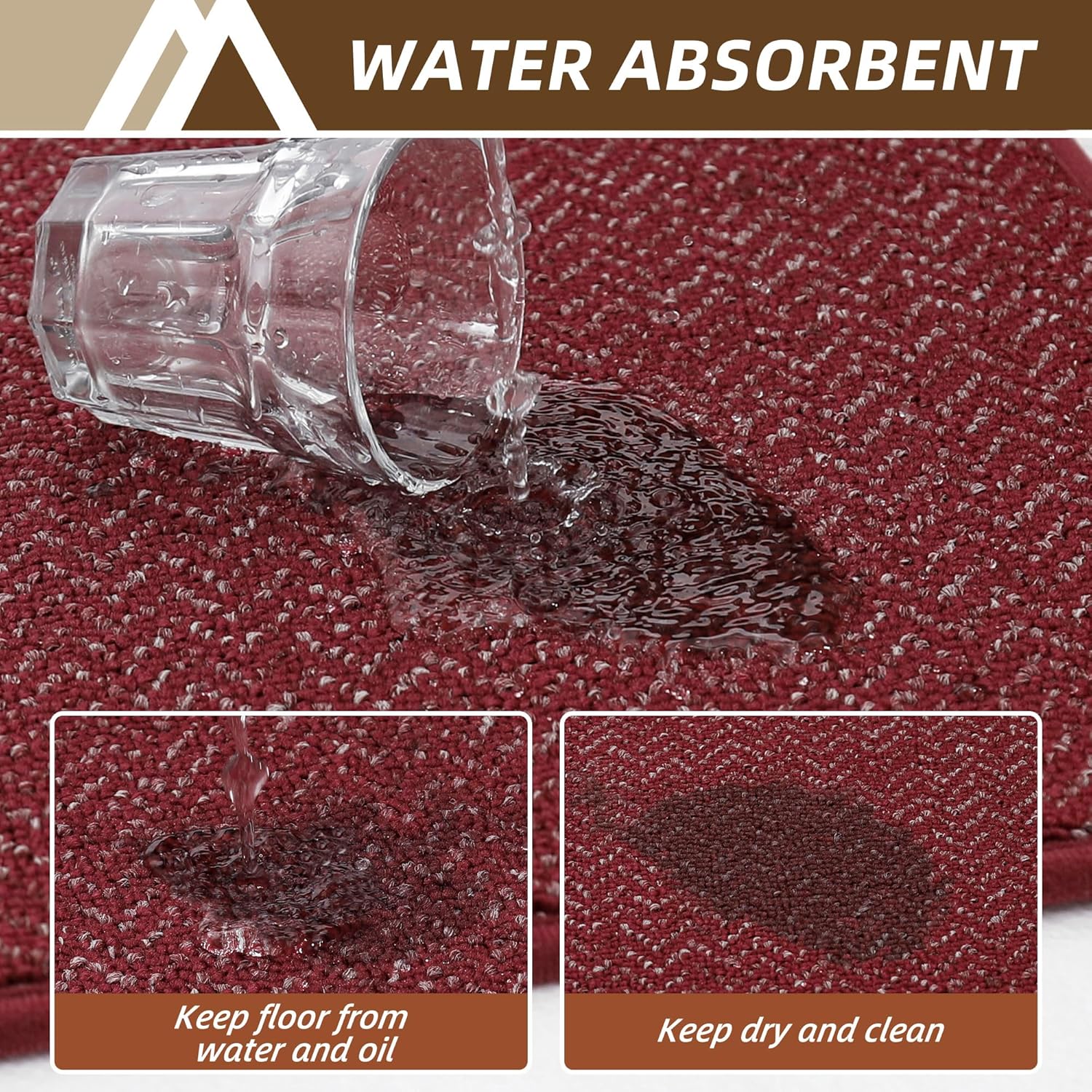 - Absorbent and Stain Resistance:Our kitchen rugs are made of premium Polypropylene fibers,featuring three-color dense yarns weaving, which can effectively absorb spilled oil and water.Our kitchen mats can keep your kitchen clean and dry.The kitchen rug sets can also protect the floor from your tableware breaking or damaging the floor