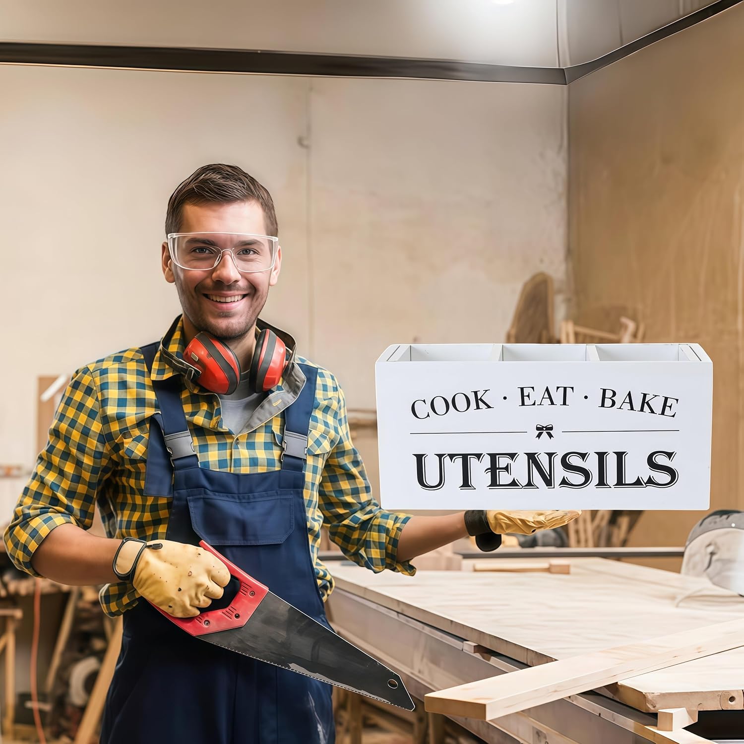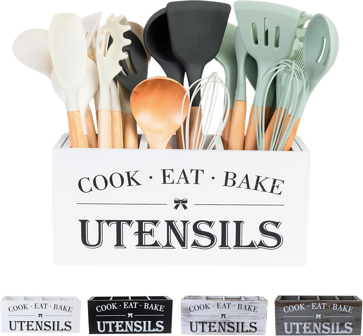- Durability & Ease of Care: Made from robust wood, this utensil holder is built to last, withstanding daily use and the test of time. The smooth, finished surface is easy to clean; simply wipe with a damp cloth to maintain its beautiful appearance.