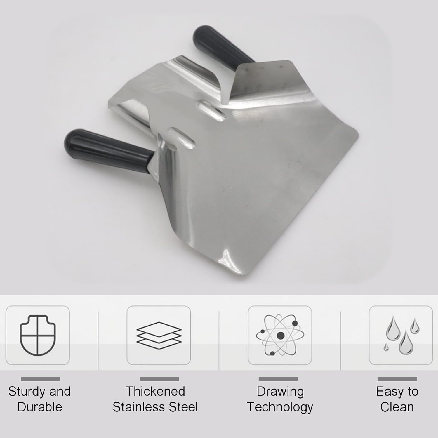 - 【Ideal Dimensions for Easy Handling】Joyangy's stainless steel french fry scoop features the perfect size for comfortable and efficient use. Measuring 22.7cm/8.94" in length and 19.5cm/7.68" in width, this scoop provides the standard dimensions used in most restaurants, ensuring easy handling and seamless integration into your workflow.