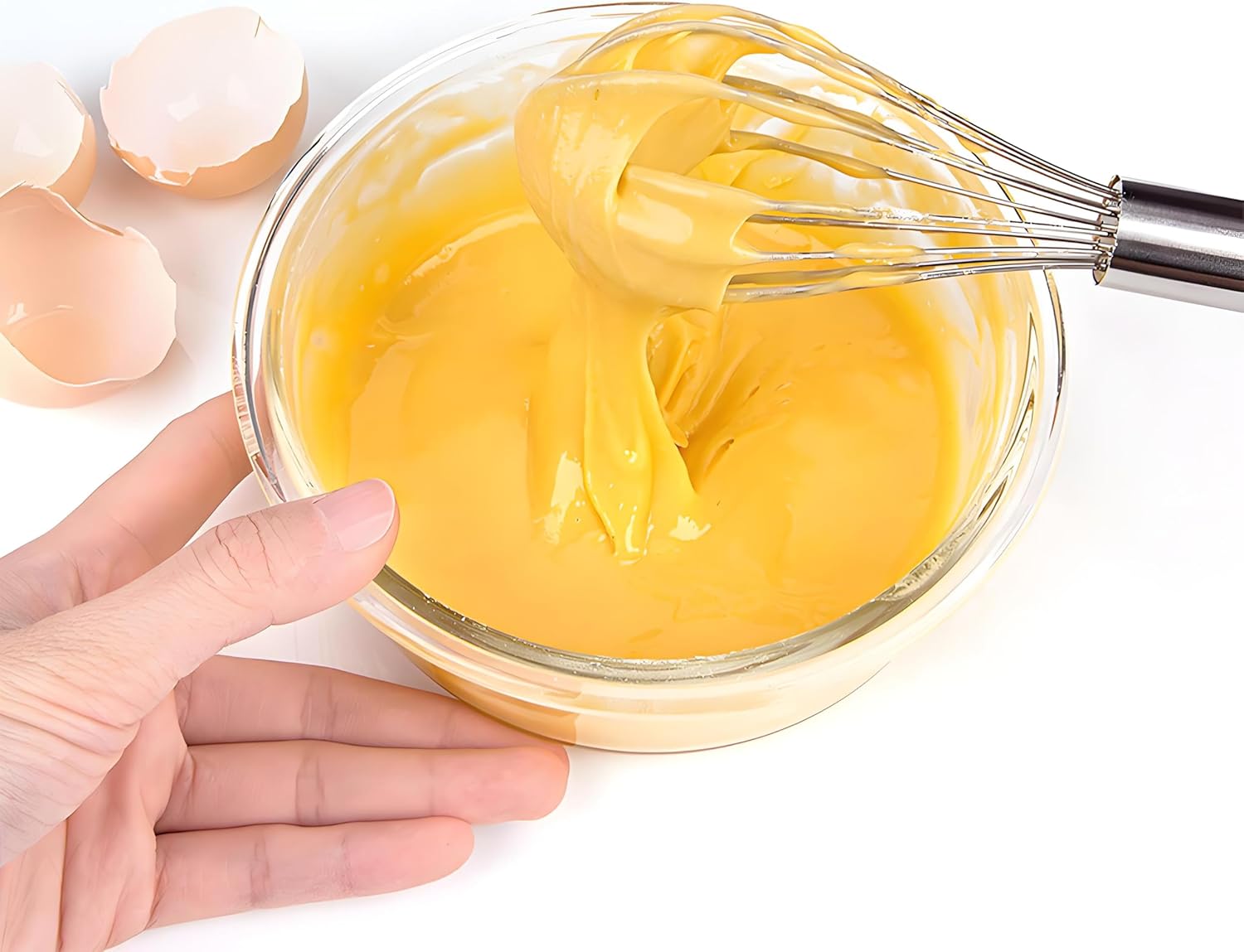 8-Inch Stainless Steel Whisk, Handheld Egg Beater for Mixing Batter, Whipping Cream
