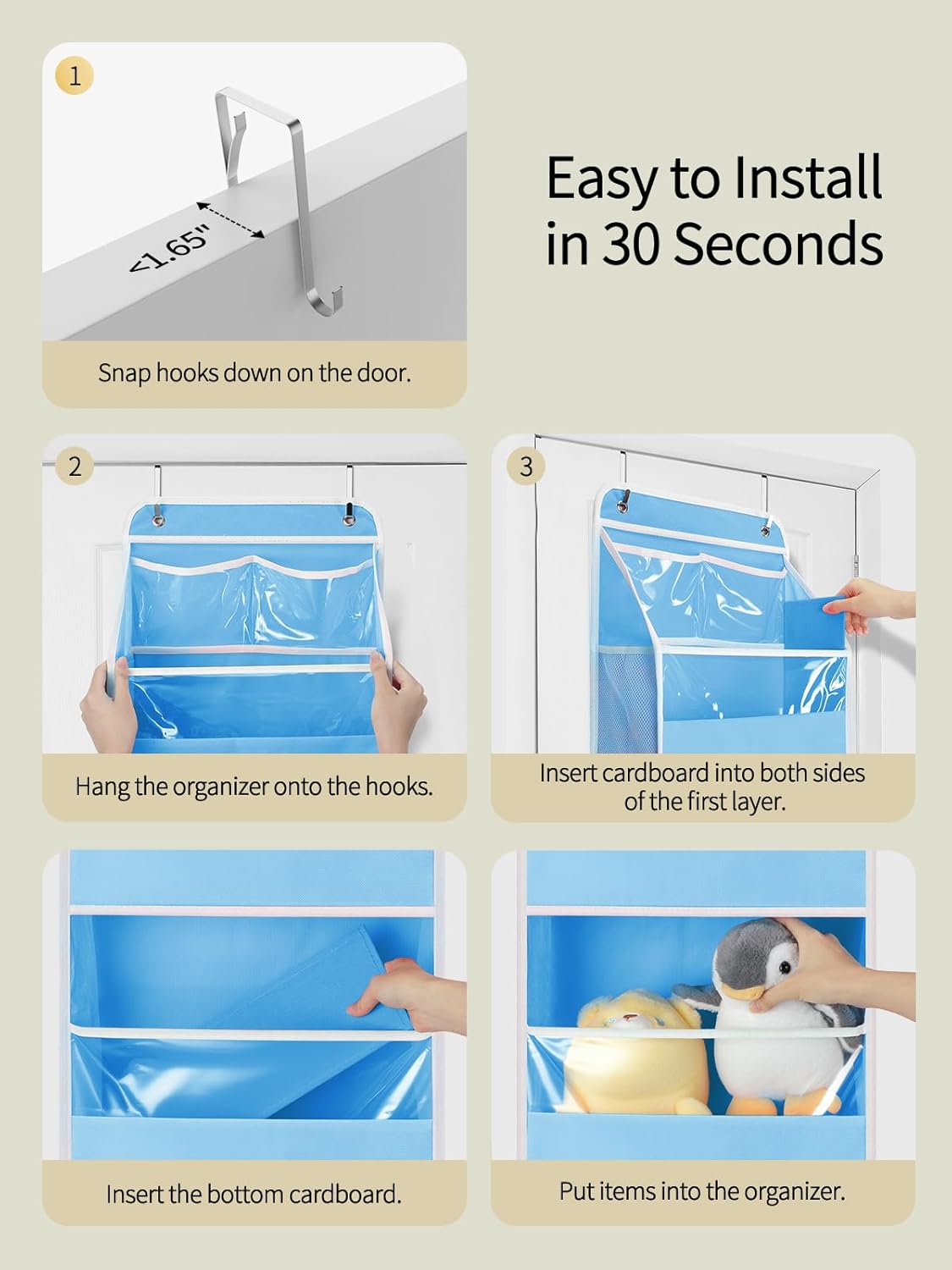 - Clear Windows, Effortless Access - This enhanced version of Yecaye over door organizers has incorporated transparent PVC panels that reveal contents instantly. Never again struggle to find cotton swabs, chargers or socks - your essentials remain perfectly visible and within reach. More than just storage, its contemporary aesthetic elevates the door organizer into an eye-catching display. Showcase plush toys, craft supplies or treasured keepsakes while keeping your space tidy and visually appealing.