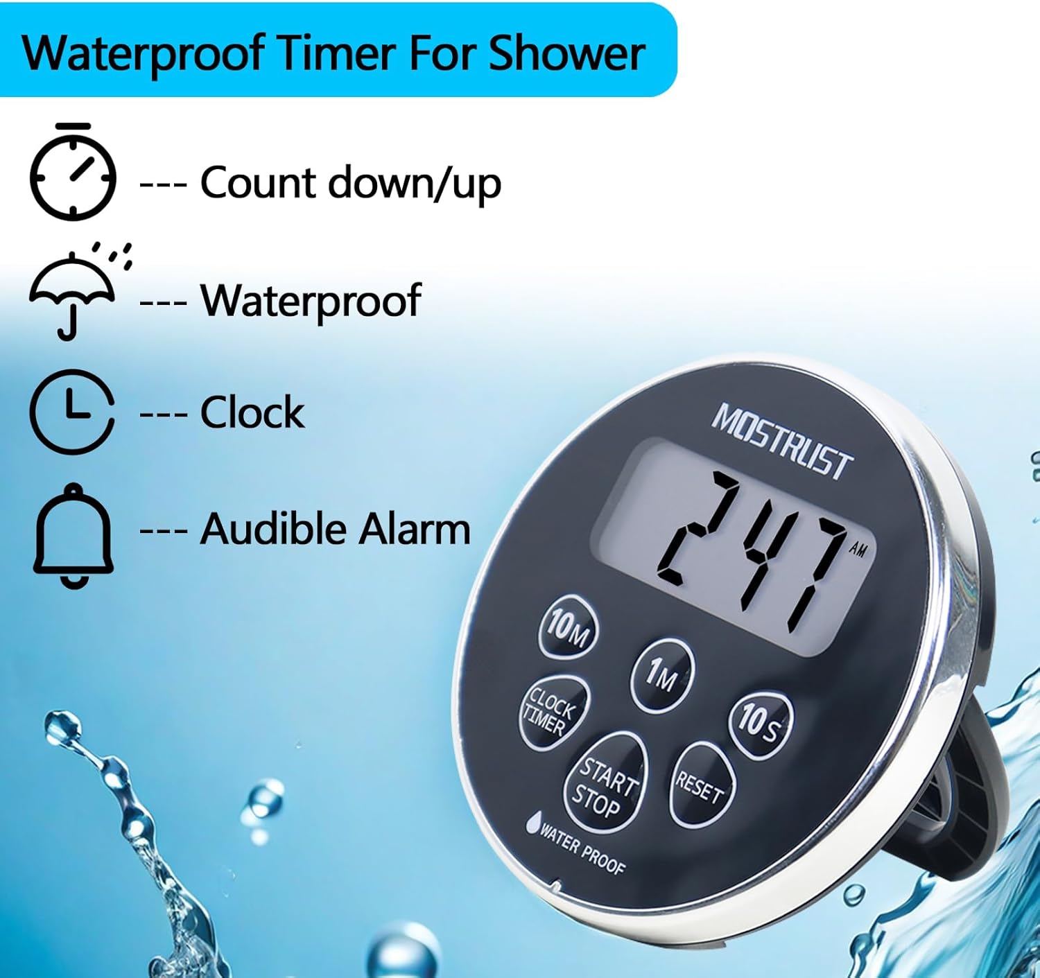 - Waterproof Design: MOSTRUST Shower Timer is designed with an IPX7 waterproof rating, allowing it to function properly even when fully submerged in water for a short period of time. It is useful not only for shower timer in the bathroom, but also for studying, exercising, cooking, and outdoors. It can serve as both a timer and a clock.