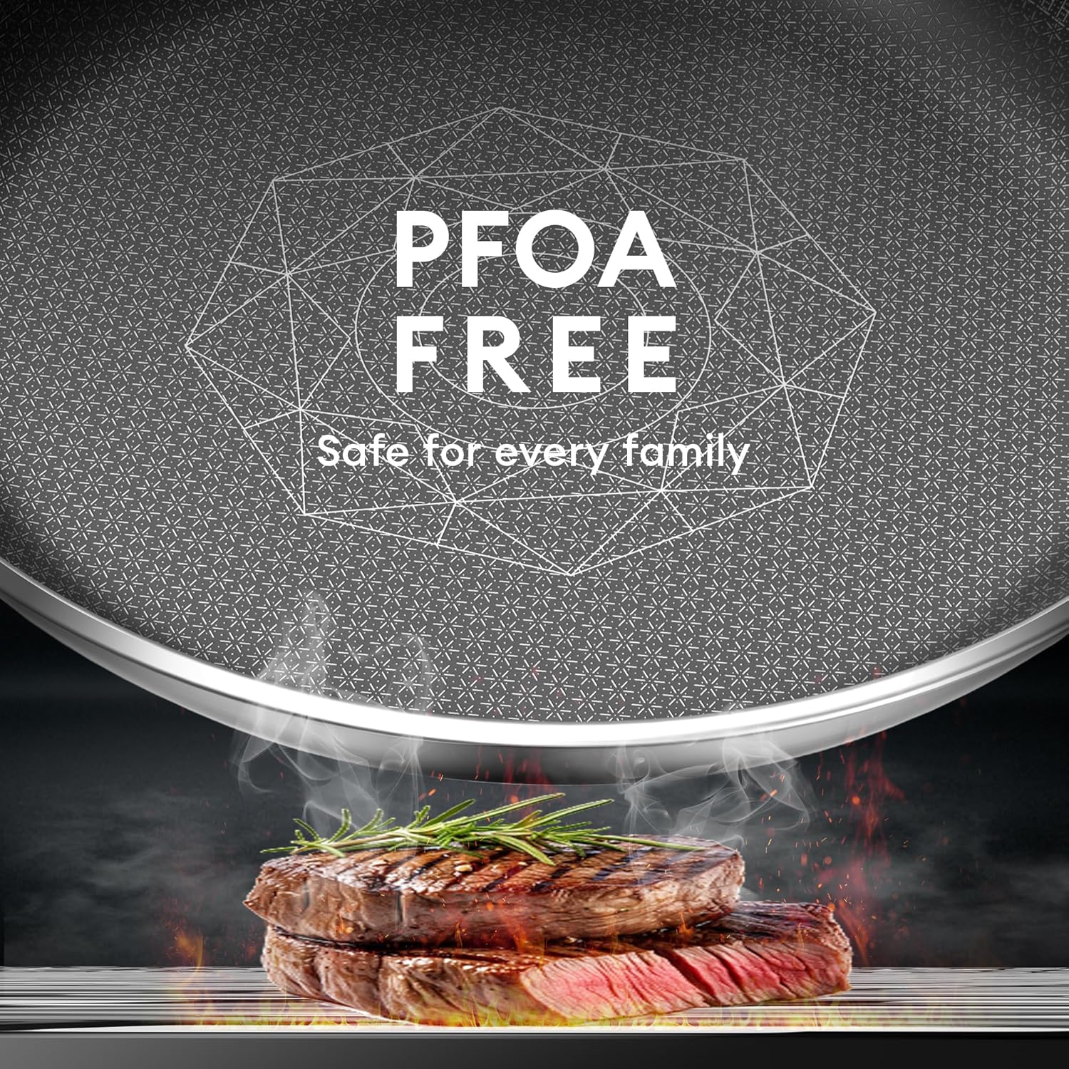 - 【Food-grade Stainless Steel Pan】: The 10 inch frying pan set is made of 3-layer stainless steel with aluminum core for even heat distribution, preventing hot spots & ensuring perfect searing every time. Oven-safe & rust-resistant for long-lasting durability