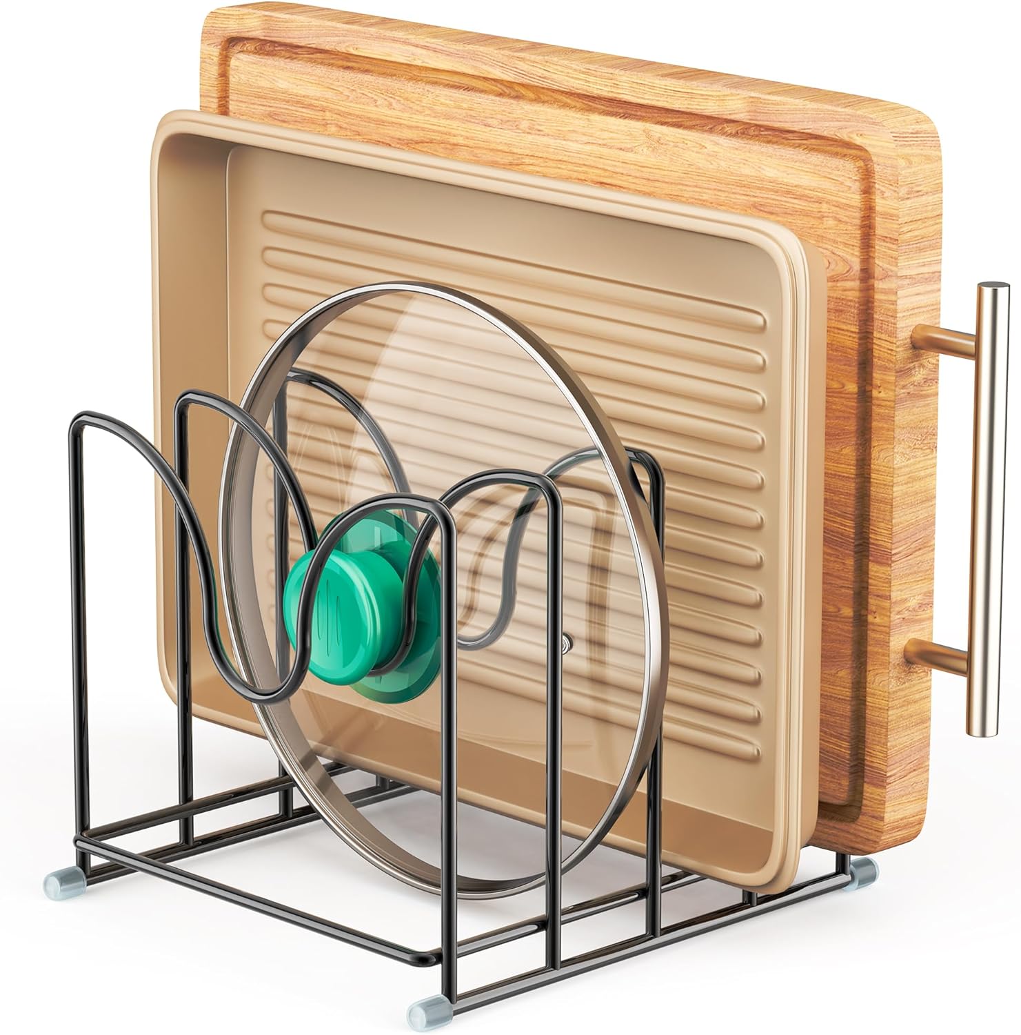 - 【Space-Saving】: Saves cabinet space, cuts the clutter. This cookie sheet organizer stands pans upright—neat, easy to grab, no more digging through messy stacks. Makes your kitchen feel less cluttered