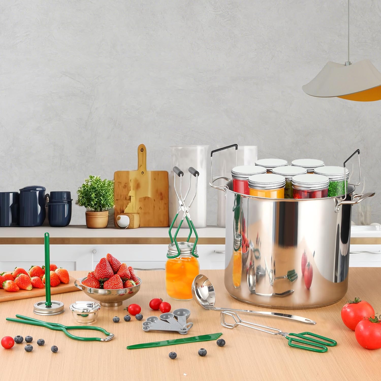 - 【Perfect Gift】: Our water bath canning kit for all your canning needs, from jams, jellies, pickles, sauces to salsas and stews. A high-quality canning set in a box makes a great gift for any food lover or soon-to-be chef. It is also a must-have in the home kitchen.