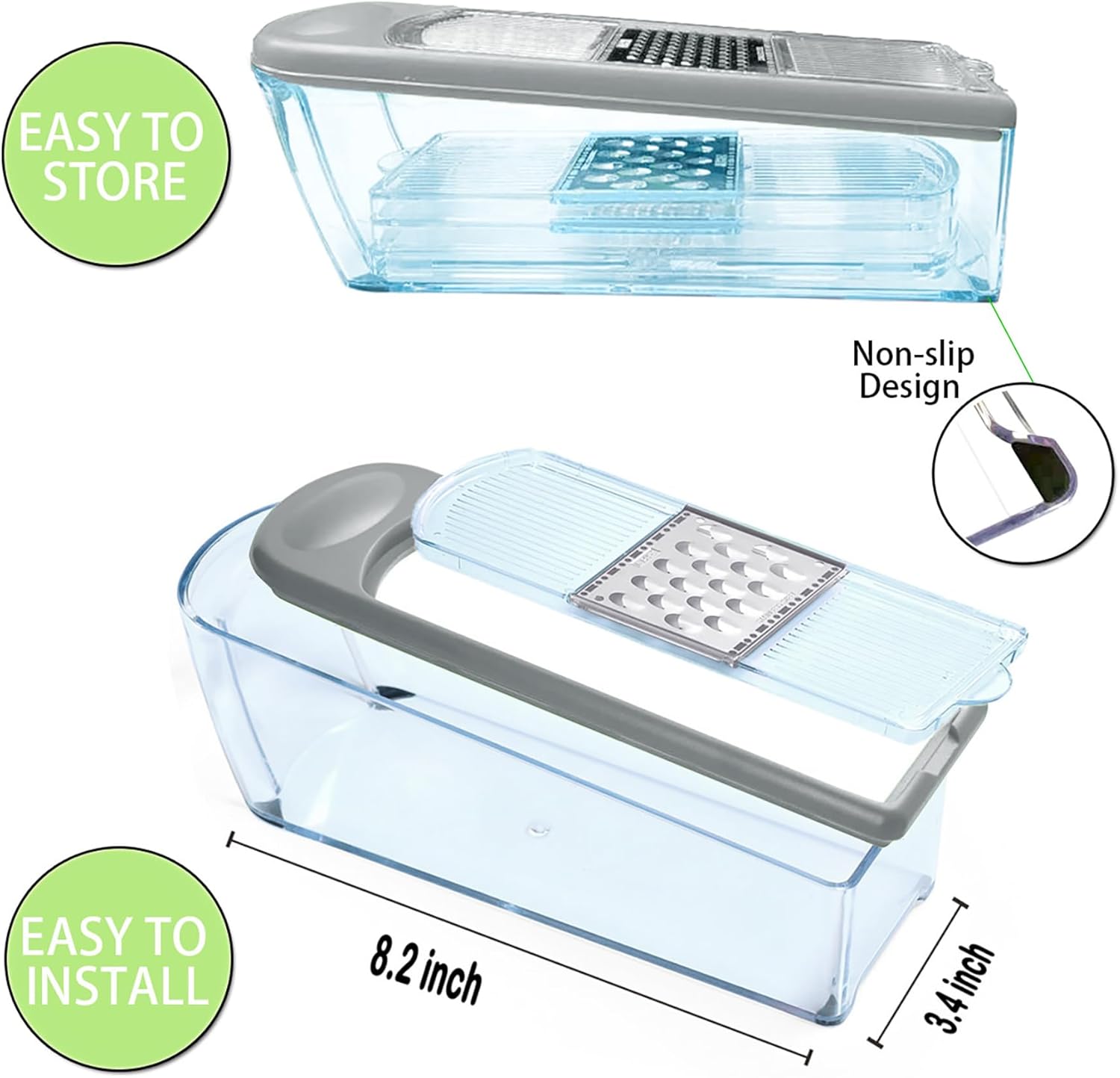 - EASY TO STORE AND CLEAN - All parts of the cheese grater can be easily removed and cleaned. 4 blades can be stored on the grater container to save space, dishwasher safe.
