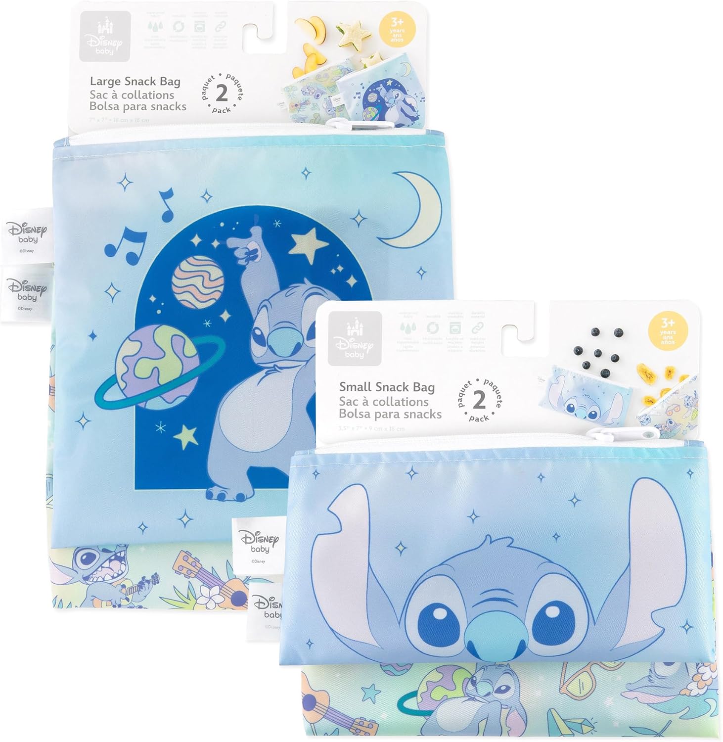 - REUSABLE CLOTH BAGGIES - Made with Bumkins’ signature waterproof polyester fabric embedded with TPU, this 4 pack includes 2 small snack bags (3.5″ × 7″) and 2 large sandwich bags (7”×7”). These bags offer a fun yet functional alternative to single-use plastic bags.