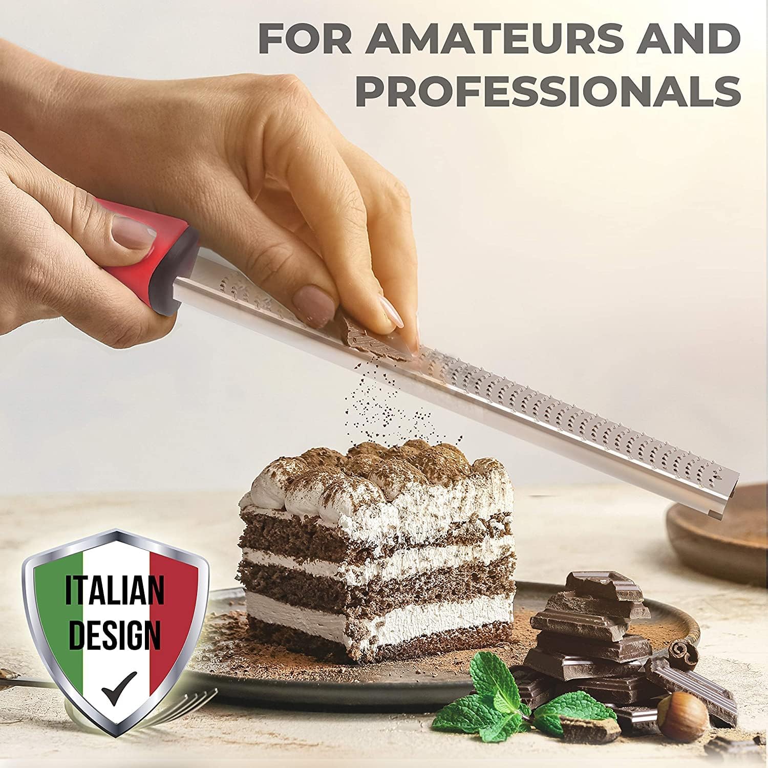 - ZESTER GRATER - Comfortable, non-slip handle. This ginger grater comes with a soft rubber handle, which is designed to give you a better grip. Shred as many ingredients for your recipes without straining your hands.