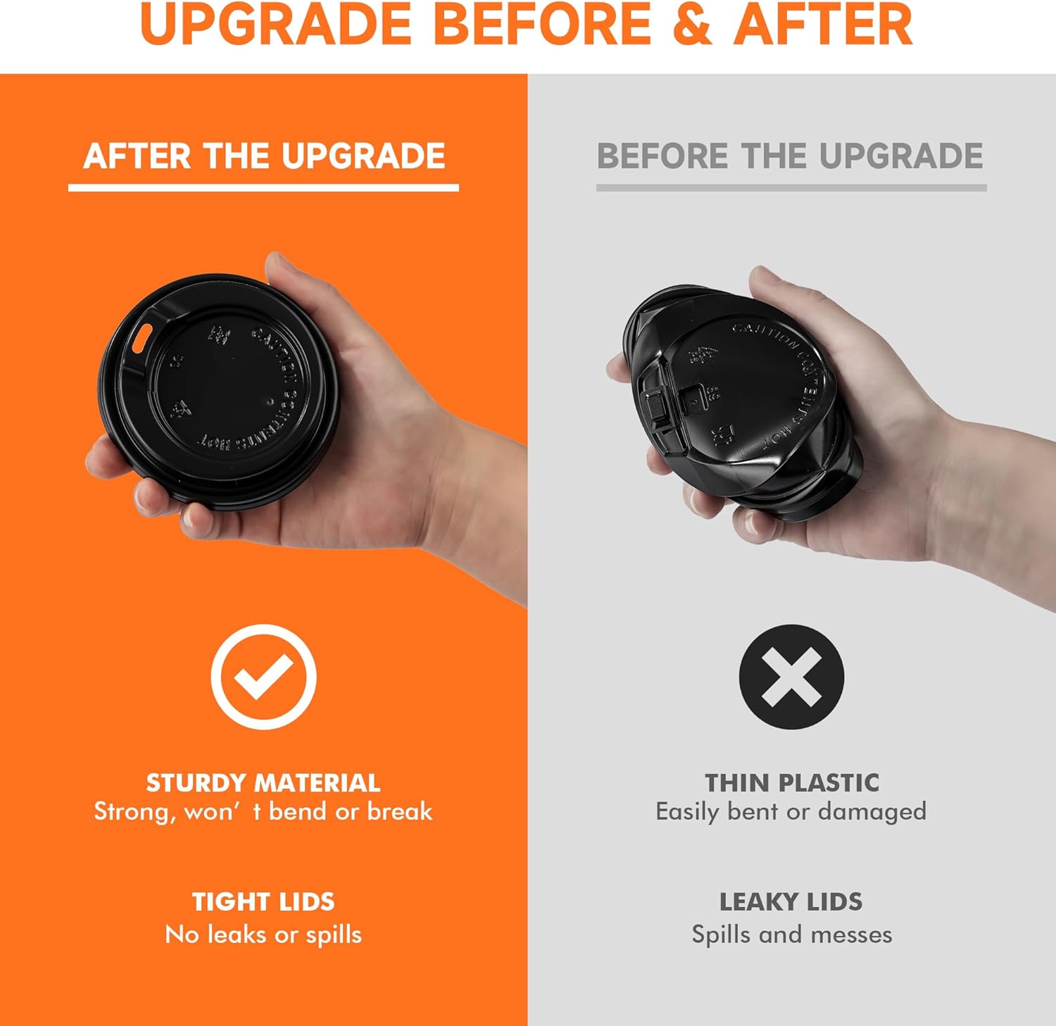 - Durable & Leak-Proof: Designed with a rolled rim and moisture-resistant lining, these hot cups are built to resist leaks, softening, or collapsing. Our disposable coffee cups with lids are tough enough for your commute, parties, or busy mornings.
