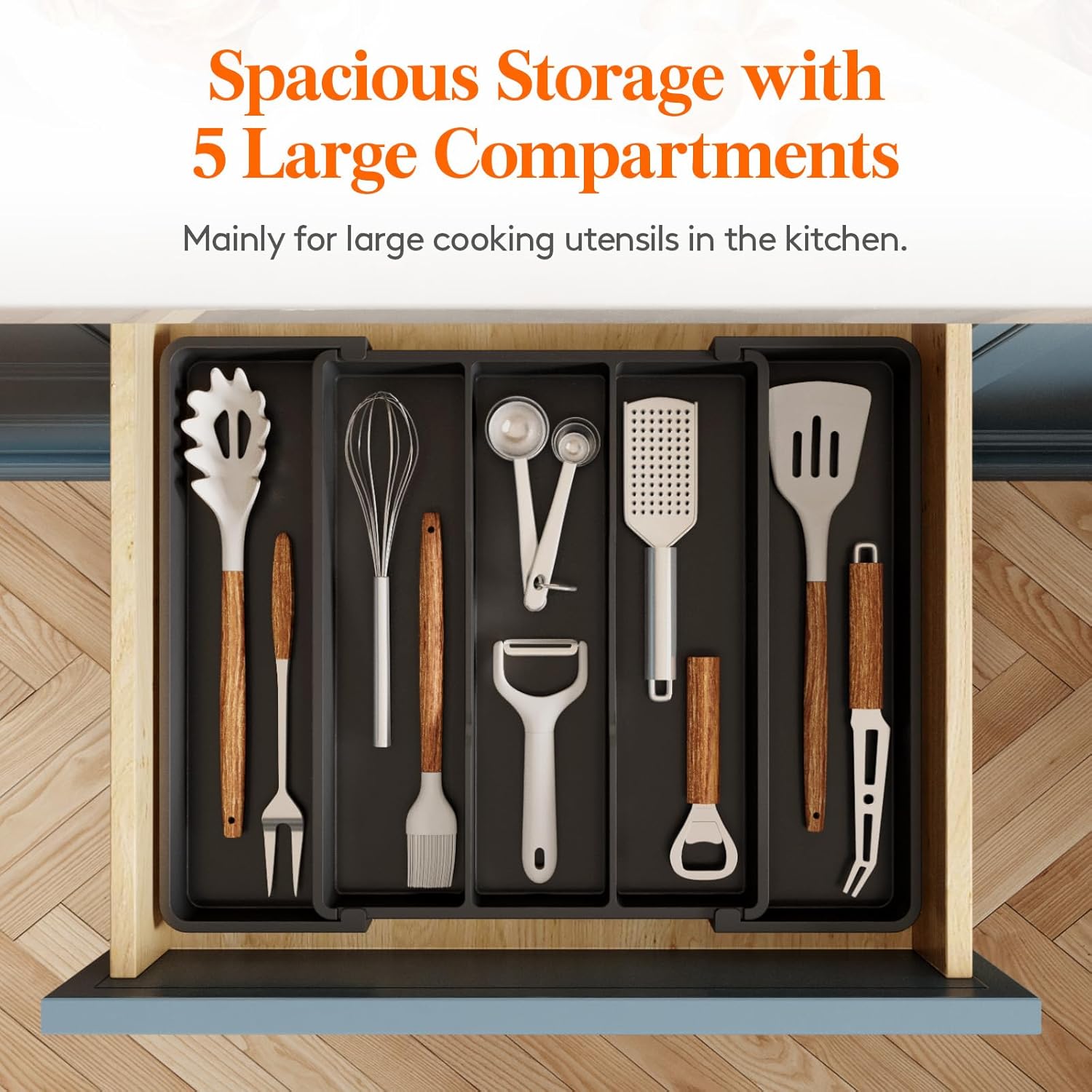 - Sort Your Silverware: The silverware tray comes with 3-5 compartments, creating more space in drawers for spatulas, ladles, tongs, utensil sets, and whisks. Streamline your cooking with a no-install organizer that keeps cutlery at your fingertips