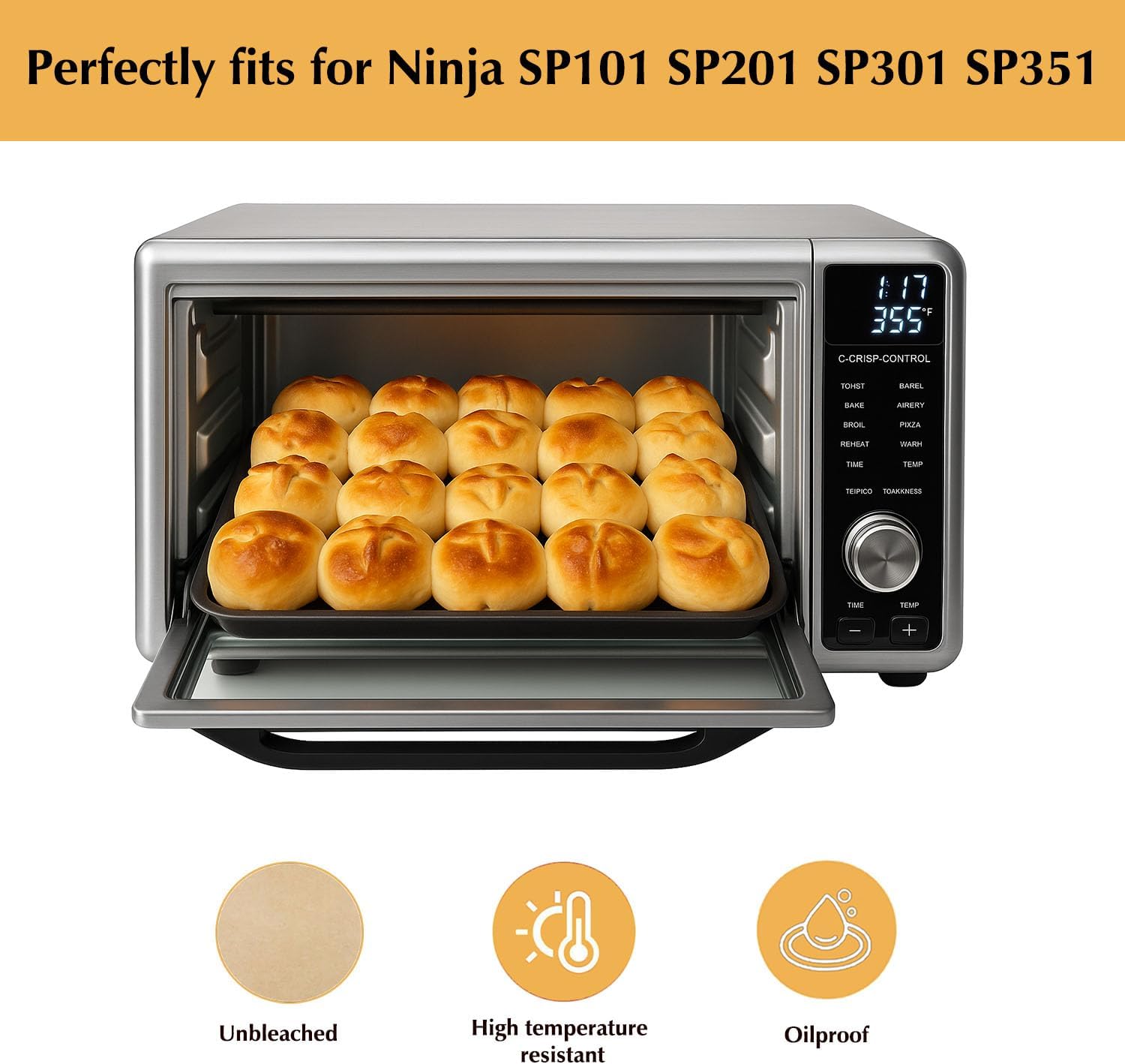 - 【𝐏𝐞𝐫𝐟𝐞𝐜𝐭 𝐅𝐢𝐭 & 𝐕𝐞𝐫𝐬𝐚𝐭𝐢𝐥𝐞 𝐂𝐨𝐦𝐩𝐚𝐭𝐢𝐛𝐢𝐥𝐢𝐭𝐲】Designed for 12-inch air fryer baskets, perfectly compatible with Ninja SP101, SP151, SP351, SP201, SP301, for Cuisinart Toaster Oven. Fits most 12-inch round air fryer baskets. Pre-cut squares save time and eliminate messy cutting.