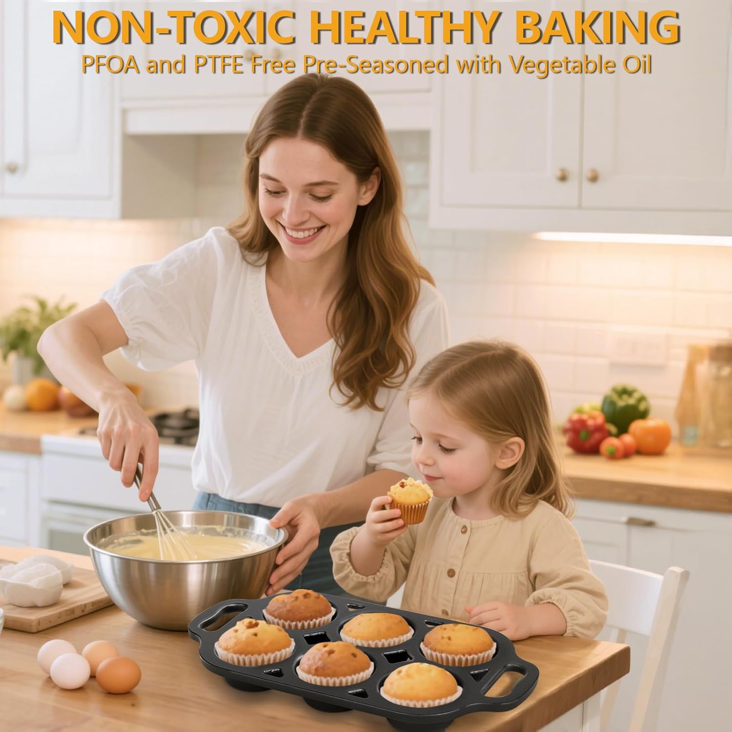 - EASY RELEASE & SAFE BAKING: Pre-seasoned with vegetable oil for a naturally non-stick finish, this cupcake pan makes it easy to release your treats and enjoy safe, stress-free baking every time