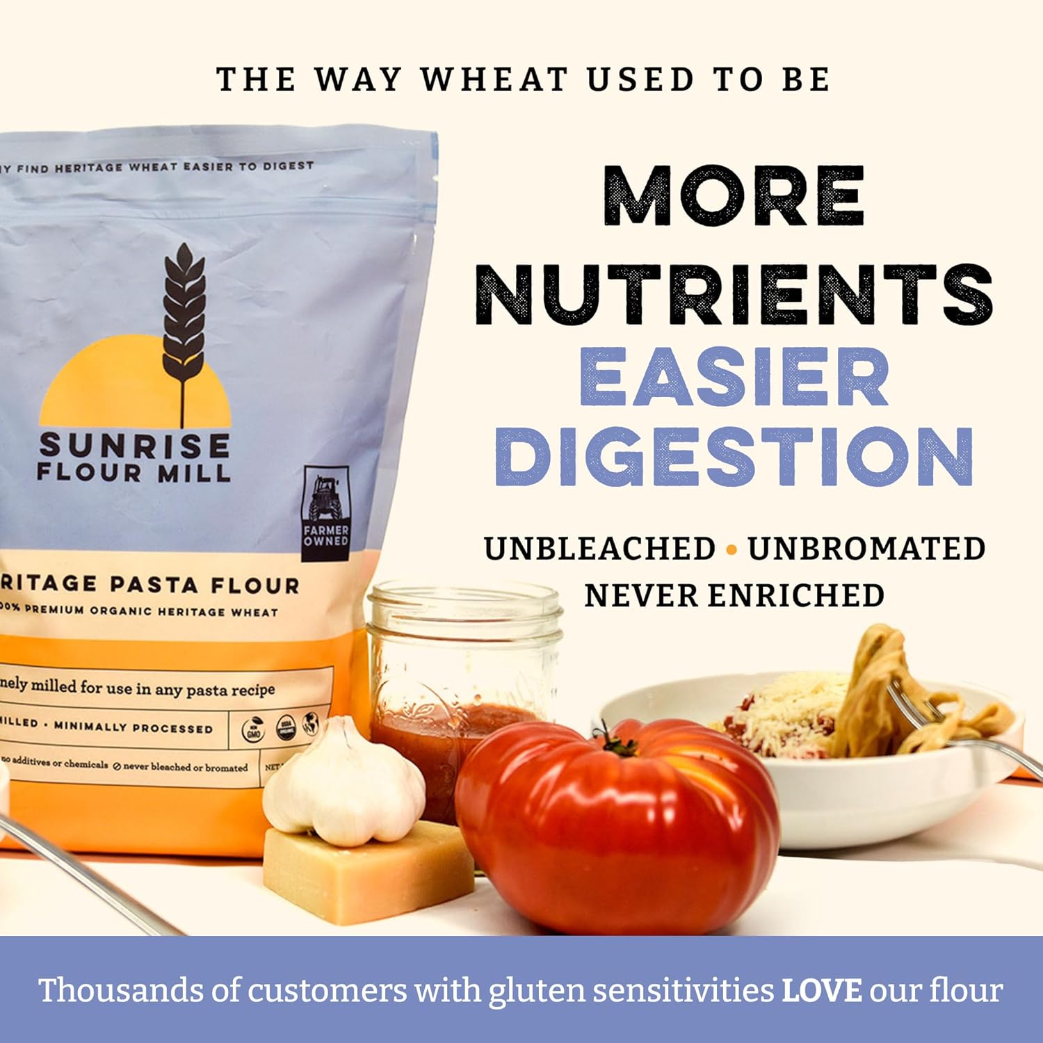 - NUTRIENT-RICH & ALL NATURAL – Made from a blend of organic heritage wheats, this pasta flour is free from chemicals, additives, and glyphosate—delivering clean, nutritious pasta that’s wholesome enough for the whole family.