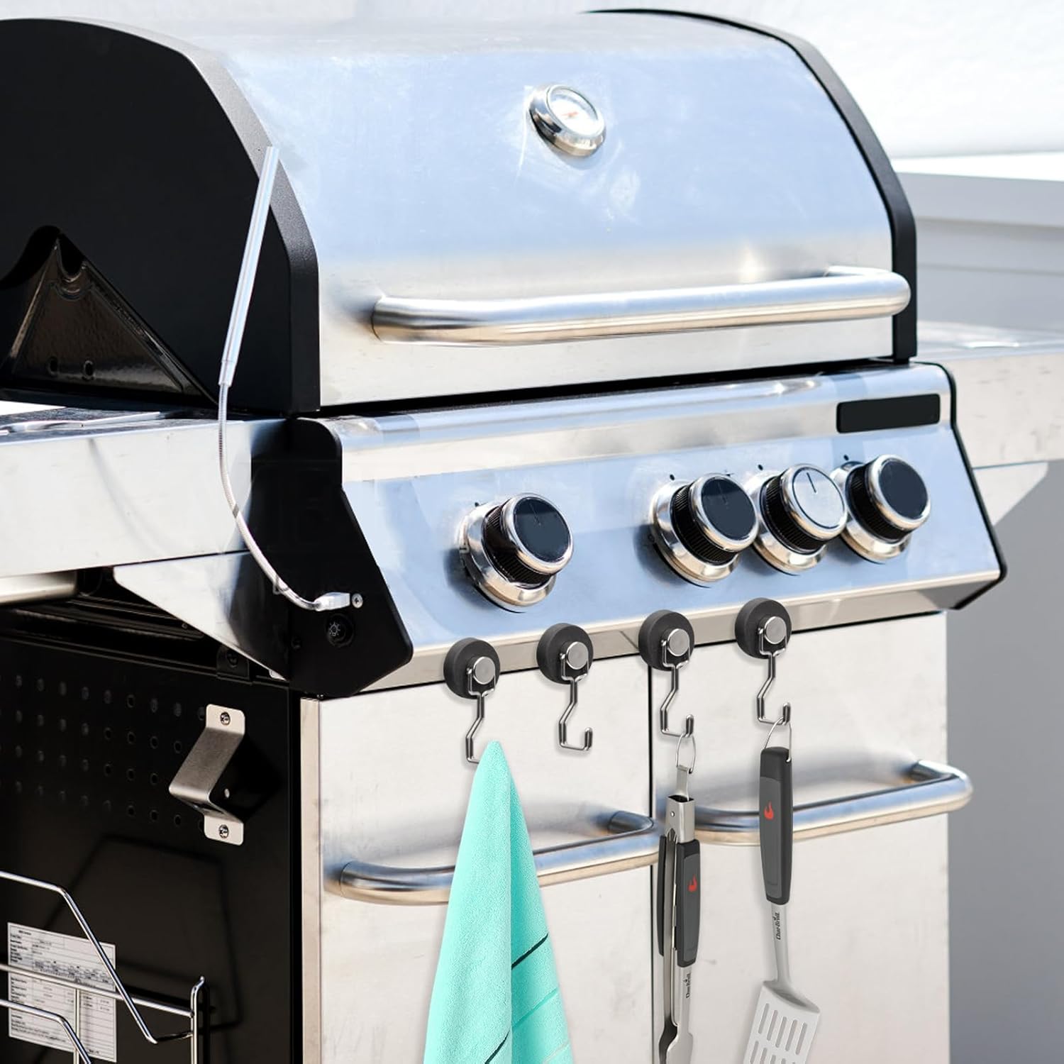 Magnetic Hooks for Outdoor Grill,Essential for Cruise Ship Cabins & Refrigerator,2 Pack Strong Rubber Coated Fridge Hooks, Scratchproof & Waterproof, Holds Keys, Towels, Crafts (Silver)