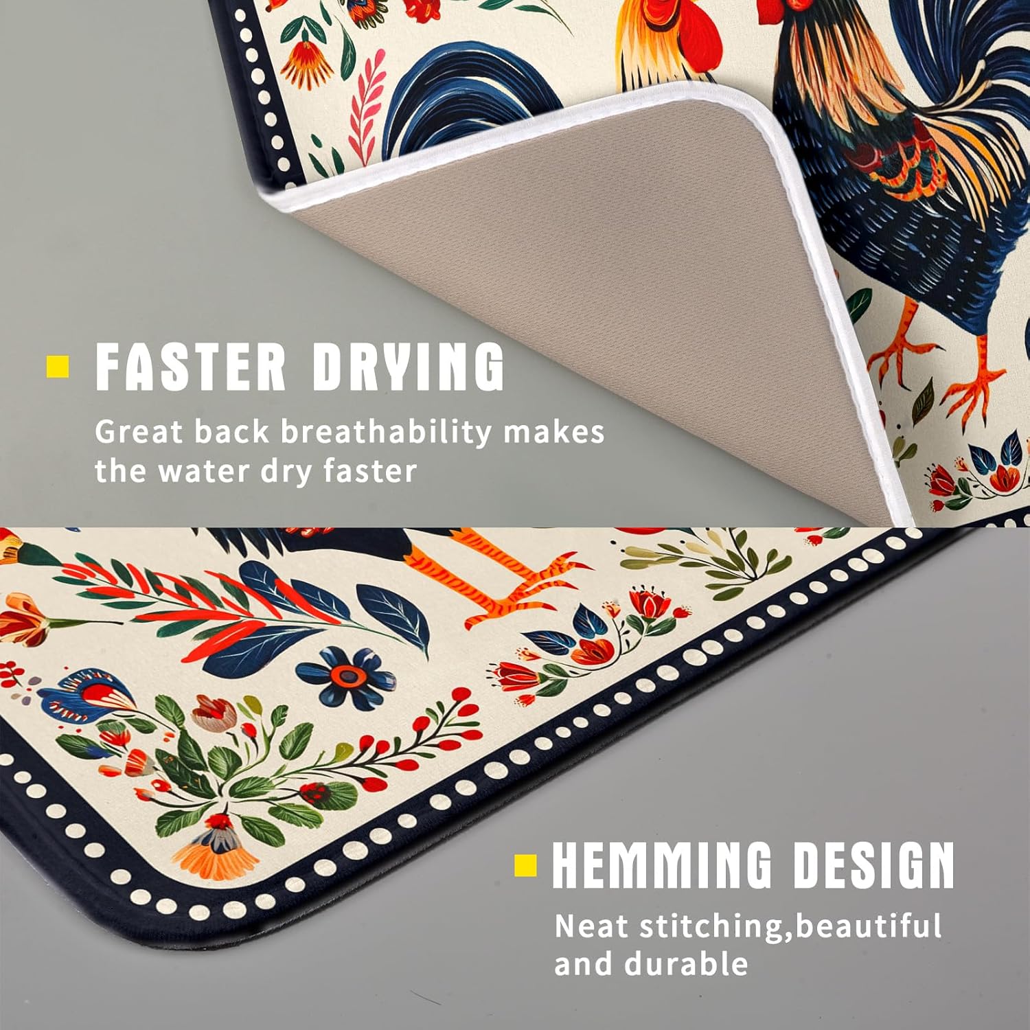 Roosters Chicken Dish Drying Mat for Kitchen Counter Absorbent Microfiber Drying Pad 16 x18 In