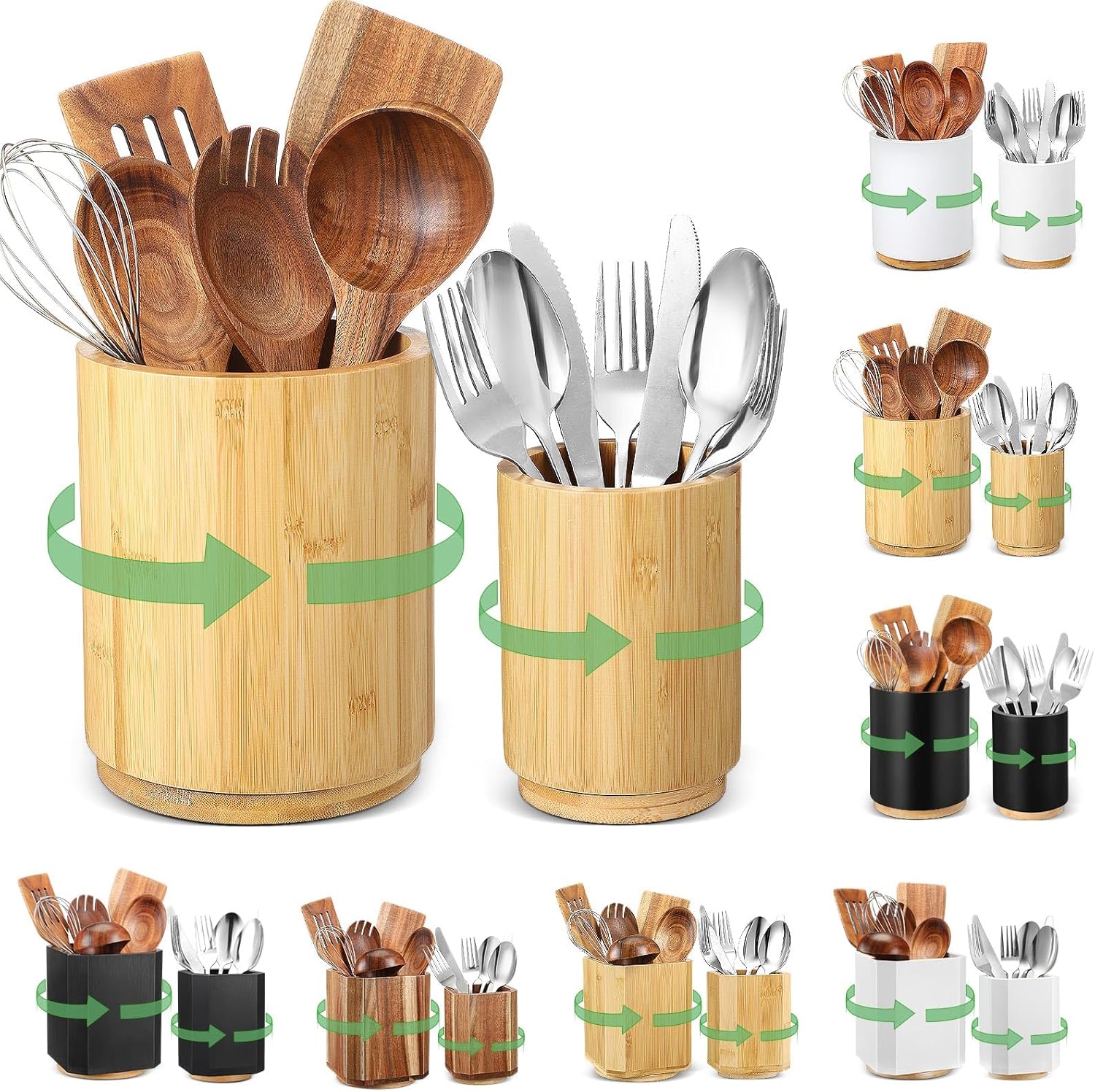 - 360° Smooth Rotation: rotating base design, just gently rotate the utensil holder, all kinds of kitchen utensils at your fingertips, you can quickly get the one you need when focus on cooking, greatly improve cooking efficiency