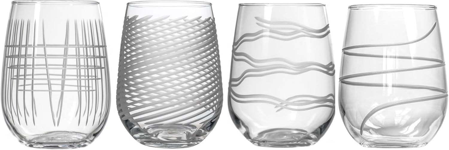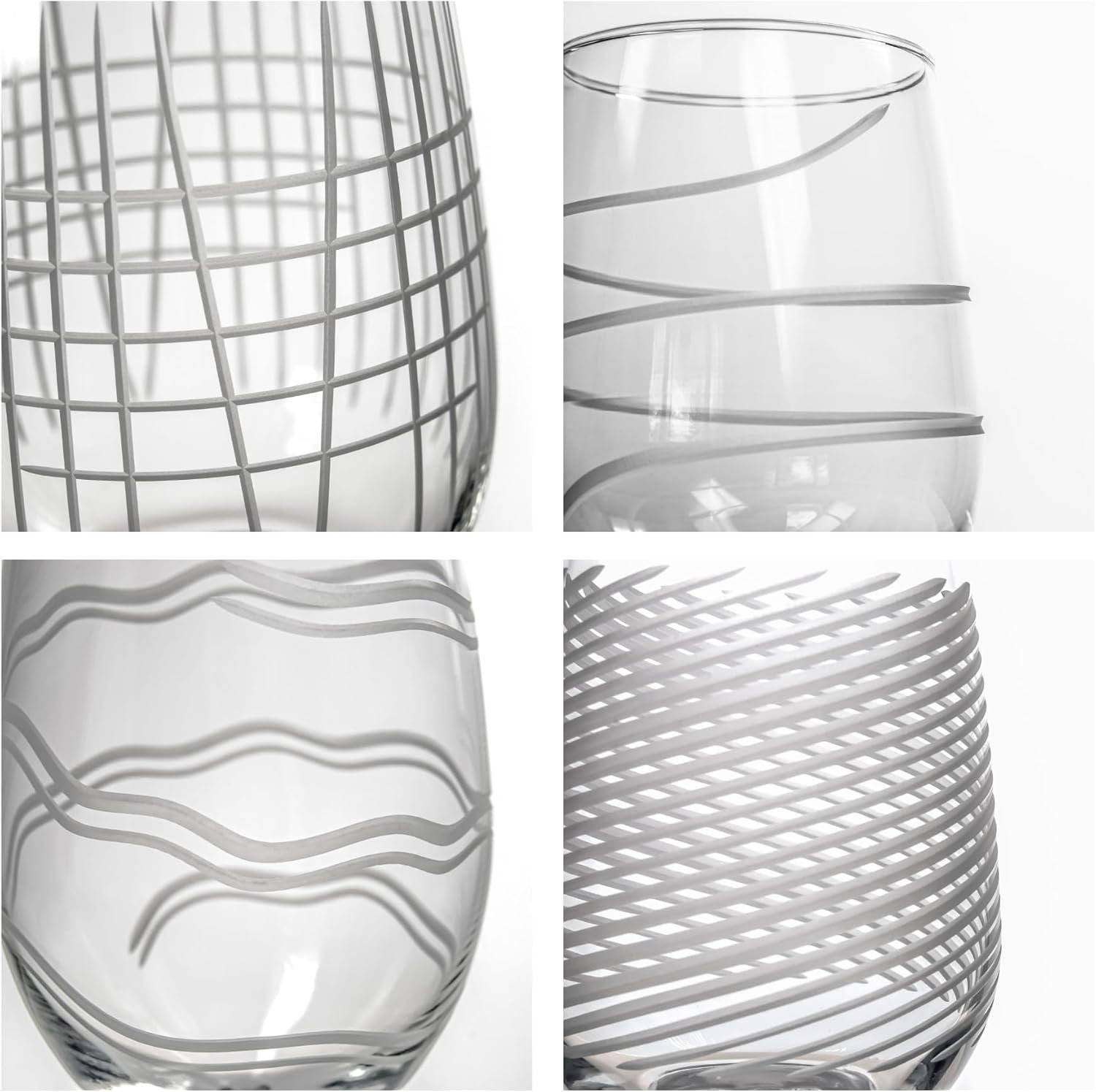 Rolf Glass Symmetry Stemless Wine Glass| 17oz Stemless Tumblers | Proudly Made in the USA | Lead-Free and Diamond-Wheel Engraved | Set of 4