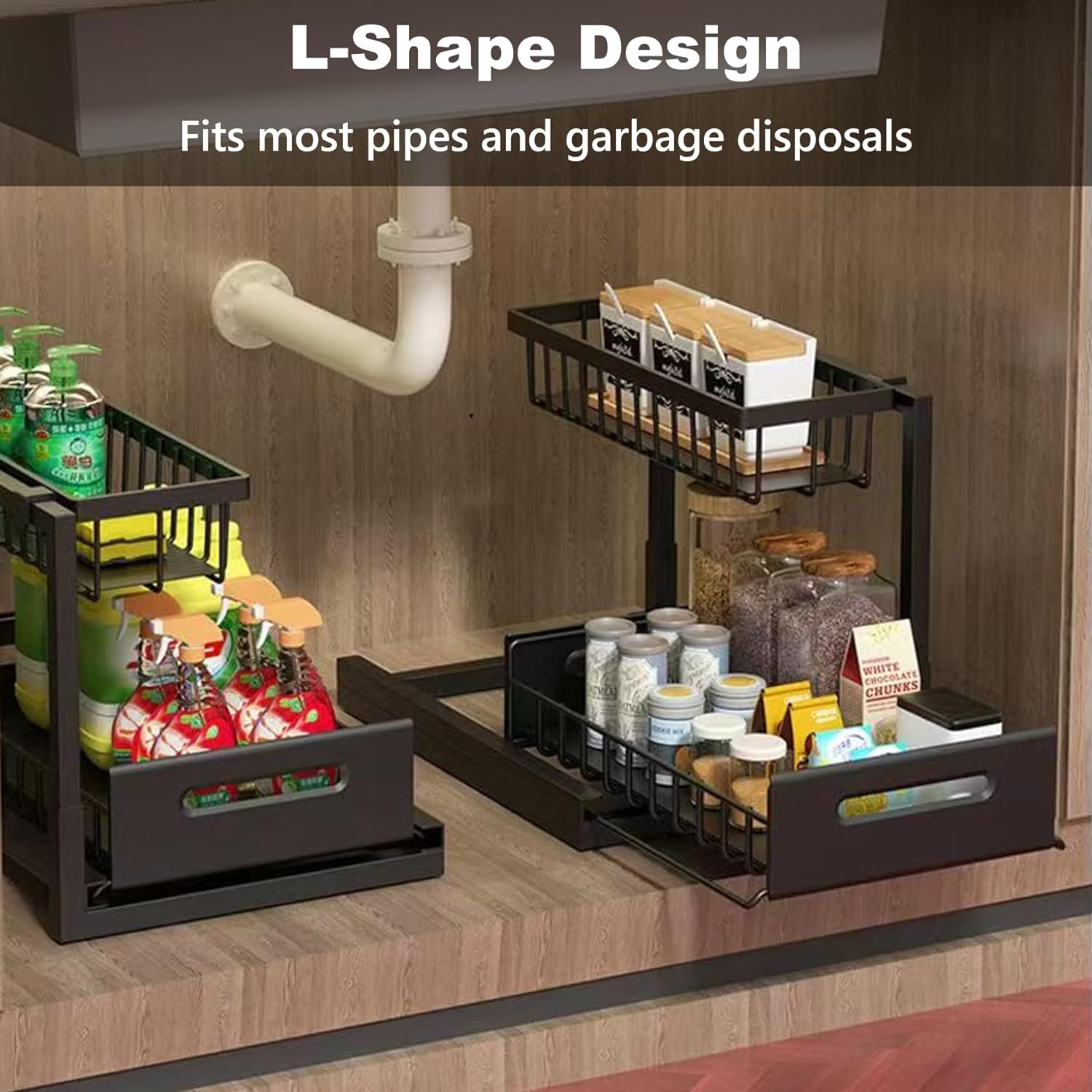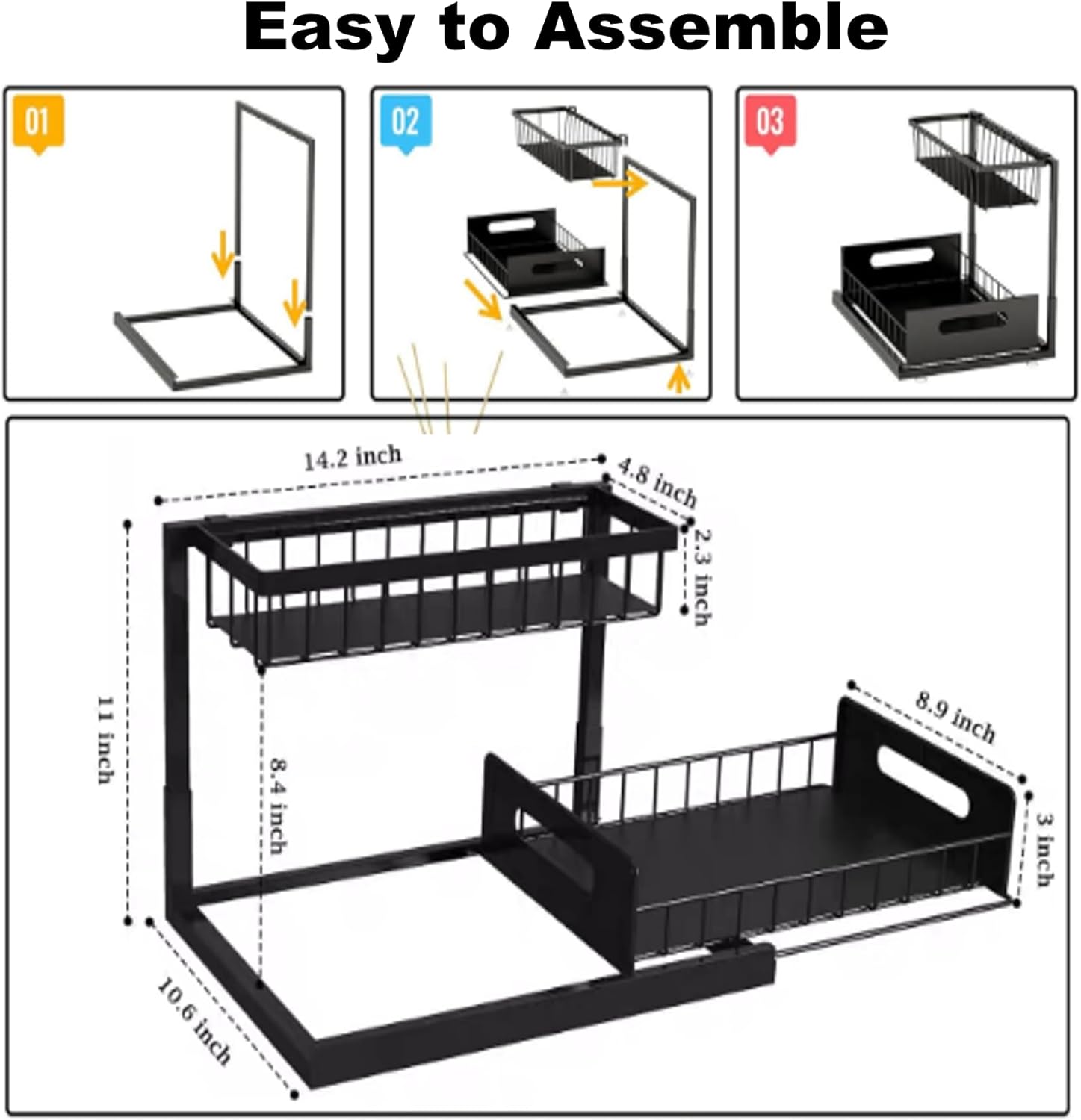 2 Tier Under Sink Organizer, Storage for Kitchen Bathroom,Pull Out Cabinet Organizer Slide Out Sink Shelf Cabinet Storage Shelves (Black, 1 Pack)