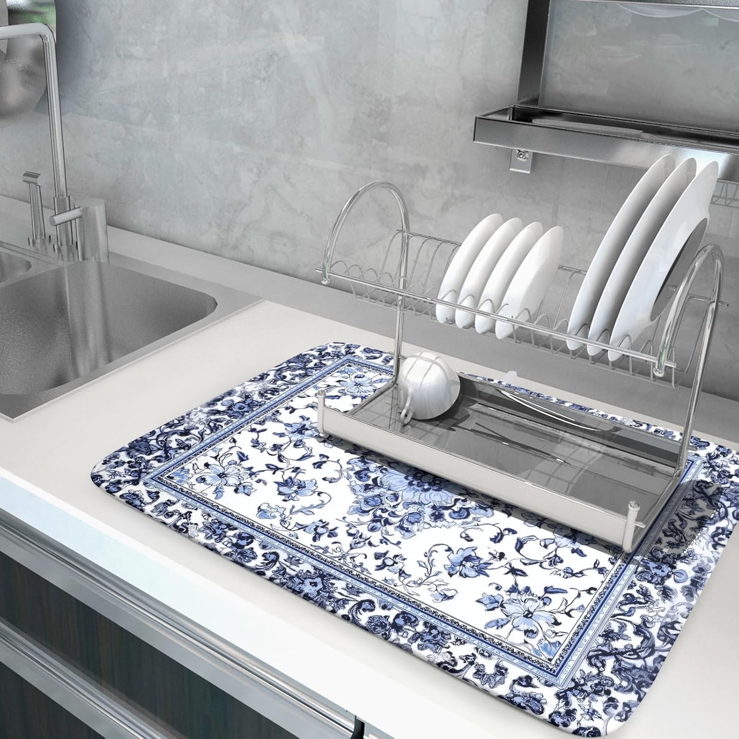 - 【Protect Tableware】Place your dishes on it or under dish racks, the bohemian flower dish mat prevents bowls, glassware, and more tablewares from being scratched or worn, can be used as dish drying mat, sink mat, dishes drainer mats to keep the countertop dry and tidy.