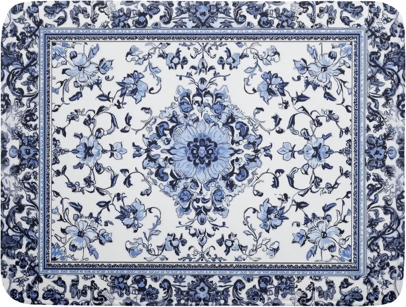 Boho Floral Dish Drying Mat 18x24 Inch Blue Leaves Kitchen Drying Pad Reversible Absorbent Dish Drainer Rack Mats Counter Tableware Decor