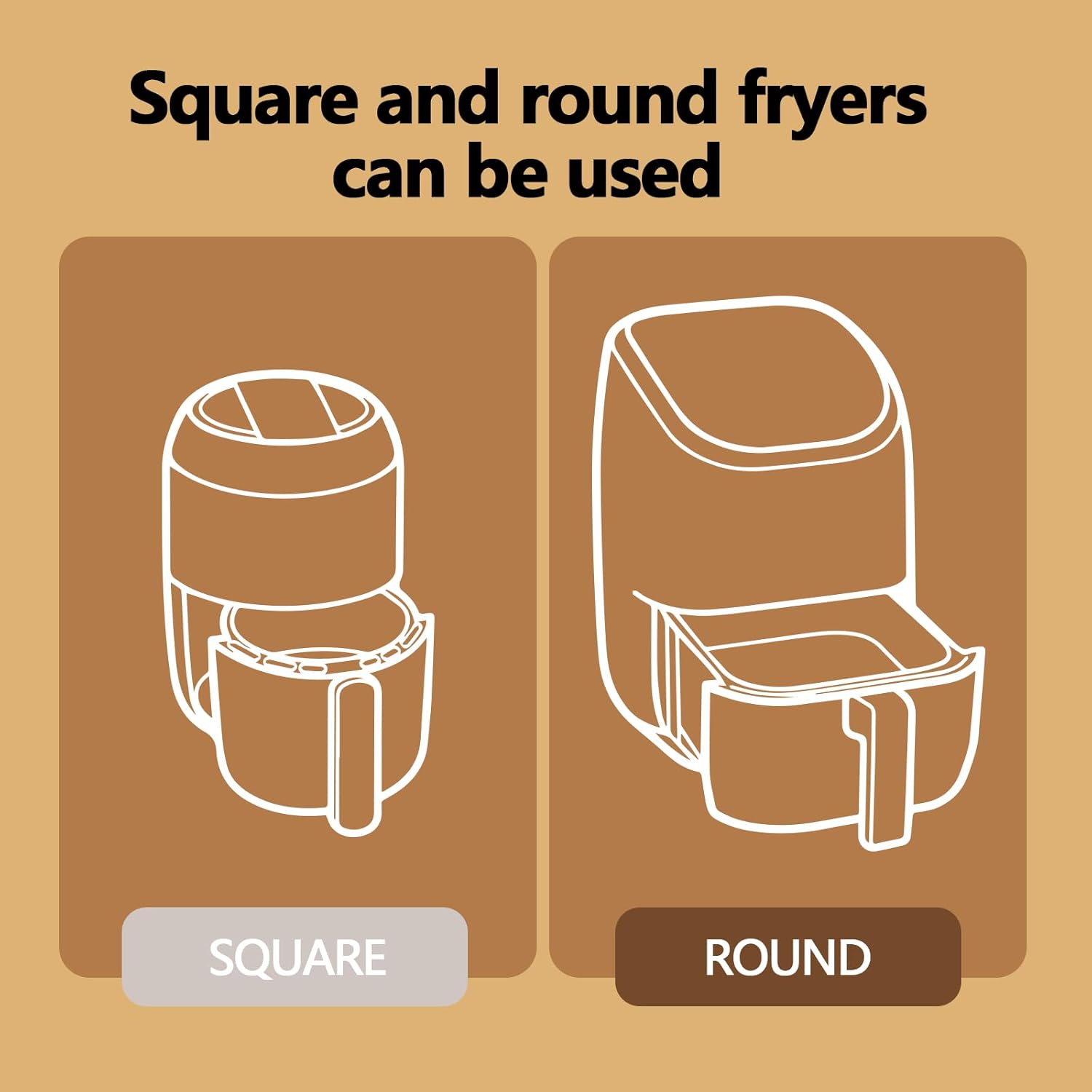 - 【Non-Stick & Oil-Free Cooking】 Enjoy healthier meals with our air fryer liners! The non-stick surface prevents food from sticking, allowing you to cook with little to no oil while keeping your air fryer basket clean.