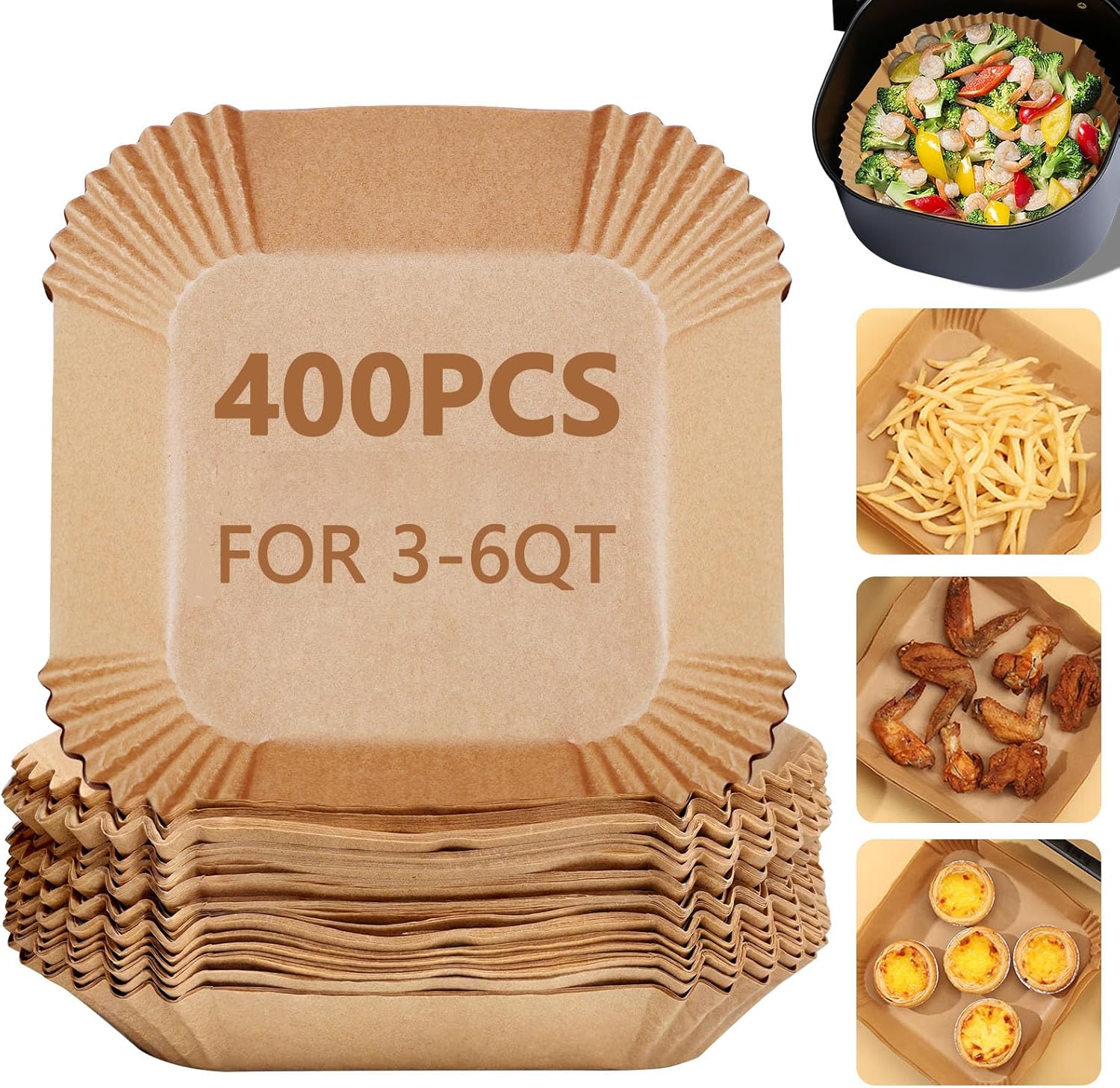 400 Pack 7.5 Inch Air Fryer Liners, Parchment Paper Sheets for Air Fryer Basket, Non-Stick, Disposable, Unbleached, Heat Resistant, Fits 3-6 QT Air Fryers. (Bottom size: 6in)